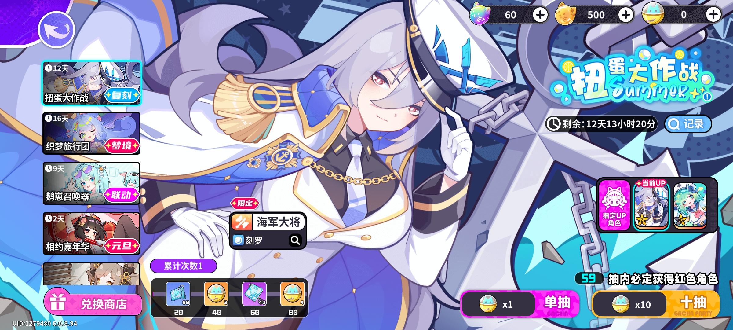 亲爱的班长大人:感谢您一直以来的支持与反馈!我们刚刚进行了热更新,具体内容如下:【角色限时返场】1. 「海军大将」刻罗、「海洋果冻」布露限定扭蛋限时返场 - 返场时间:1月22日热更新后~2月4日23:59【优化调整】1. 优化了主界面活动轮播图,新增剩余时间显示2. 优化了家园派遣系统界面、交互逻辑及家园左侧UI布局3. 优化了「安晴联动」活动「暖冬趣玩街」小游戏展示逻辑,默认按