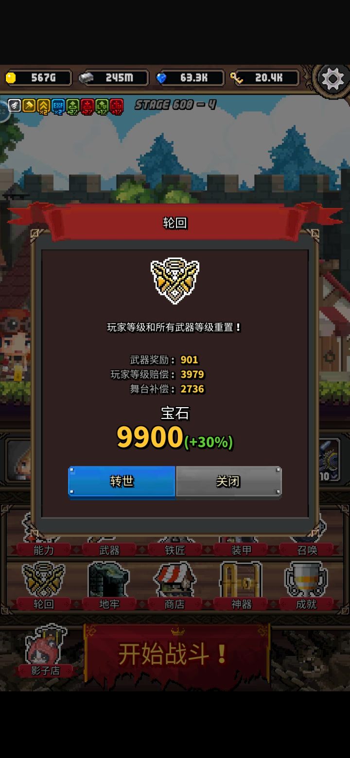 打到605关,500关BOSS爆的武器是前面那把武器伤害的几十倍,tap 打开可以用脚本,录制脚本自动转世一个小时4次多点,一次1400砖石,一天砖石收入130K