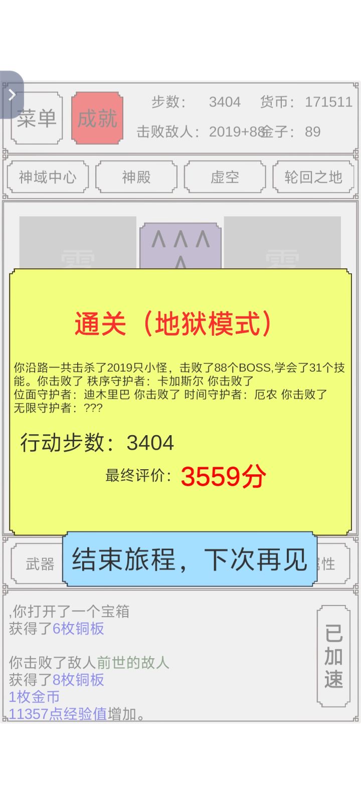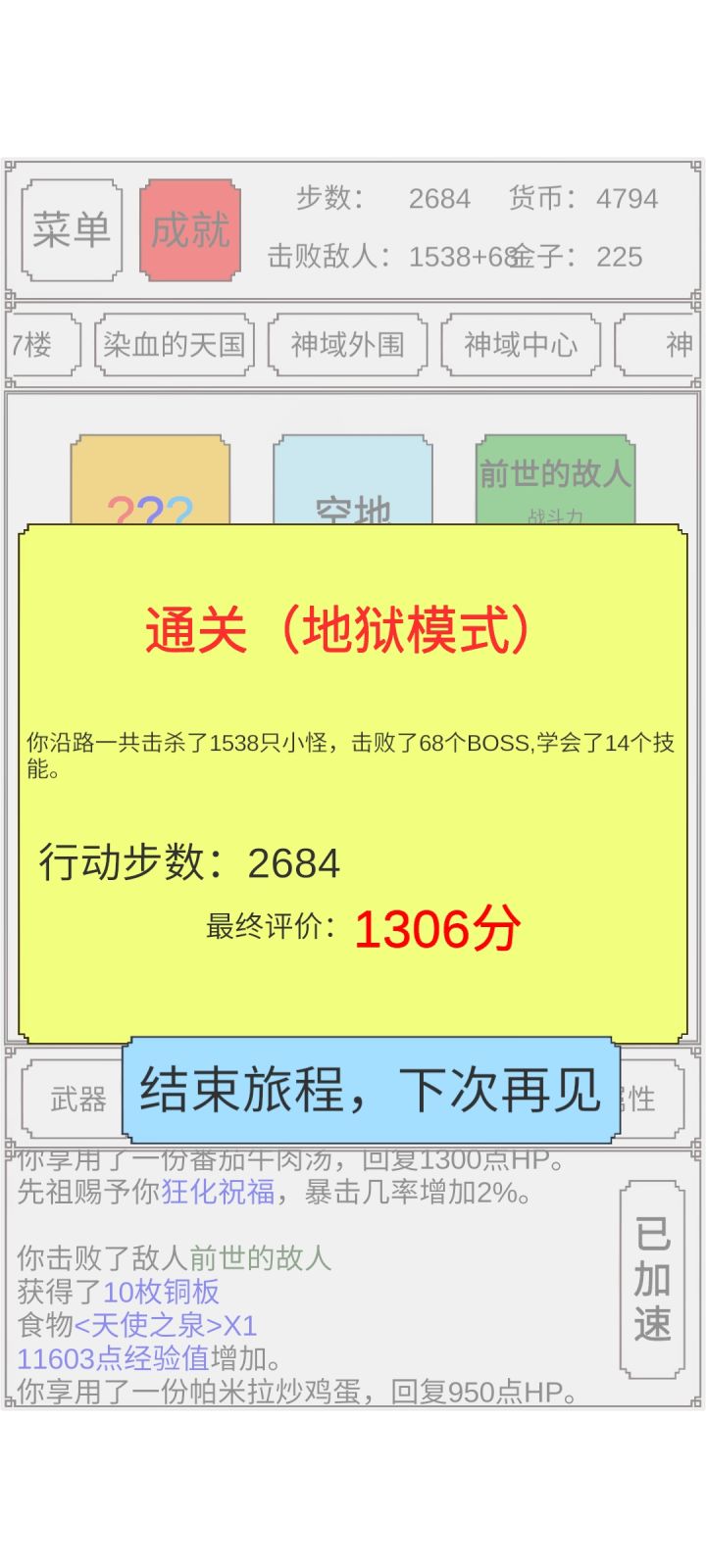 最高难度是不是有点太简单了?96暴击率,530爆伤,中几百的攻击力,总计19w左右战力,两刀爆死最终BOSS啊