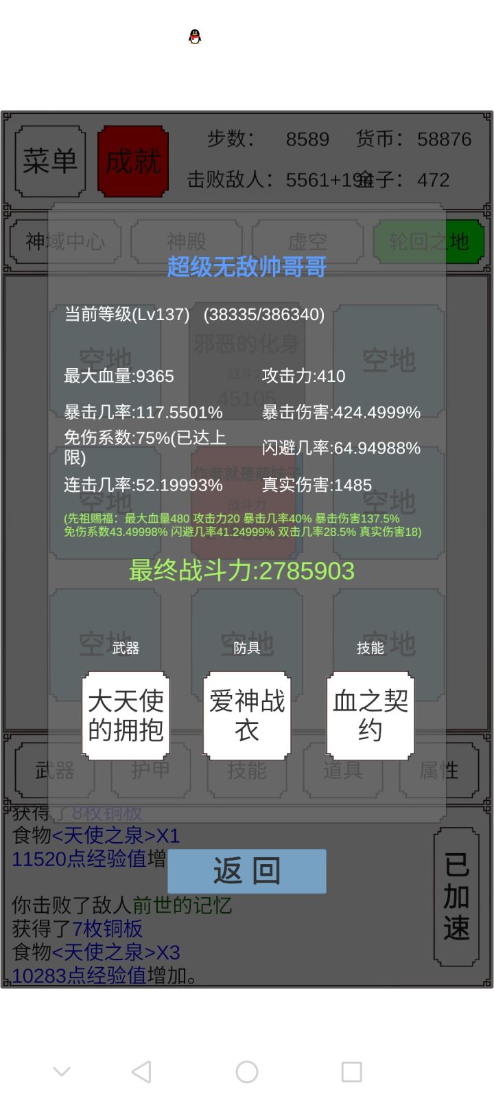 这应该是最高战力了。21474836,就是这么无聊反正加血,加攻,加爆伤,提升等级,战力都没变化。。