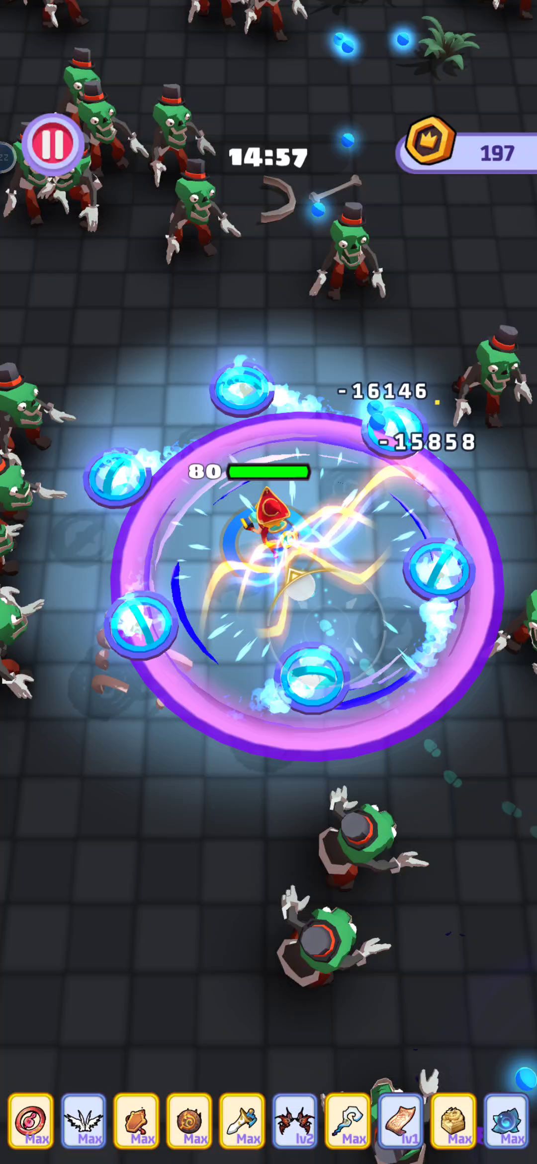 游戏挺上头的,刚刚出来刚刚好刷到,玩了一下午 第一把移速不够,被最终BOSS三下还是四下拍死了 第二把非得不行,一直刷不到死亡之笛,被小怪乱殴死了 第三把道具齐了,成功遛死了BOSS。 首先开局选带喷火器的妹纸,比较好发育,喷火器是面前扇形范围持续伤害,在没有死亡之笛和术轮之前,清怪比较给力。 游戏一共可以带10个道具,每个道具6级满级,带有2个能合成的满级道具会自动合成。【貌似玩的时候遇到了BUG,有些时候有一件满级,另一件未满,也会合成】 合成了的道具不能升级。 需要的道具: 1、【死亡之笛】(清小怪最给力)优先升满 2、【术轮】(配合死亡之笛清小怪) 3、【氪金加速核心】(武器减CD)优先升级 4、【天使之翼】【恶魔之翼】【疾风之靴】(最后遛BOSS,不然BOSS乎脸几下拍死你) 5、【经验宝珠】(升级更快,发育更快) 6、【三生石】(跟死亡之笛合成) 7、【黑驴蹄子】(跟疾风之靴合成)打最后最后BOSS好用 8、【奥术屏障】(跟术轮合成)保命的好防具 9、【暴风雪书】(跟经验宝珠合成)顺便可以打点输出 10、【清鬼咒】(跟氪金加速核心合成) 11、【大力丸】(提高输出) 一些特别的: 【寻宝项链】(增加金币)金币可以在主界面提升属性 打法: 前期需要一点操作,苟一苟,等死亡之笛跟术轮等级起来了,差不多就是半挂机的节奏,最后BOSS就跟视频里一样遛就是了,BOSS伤害很高,别硬碰硬,几巴掌就能拍死你。 小技巧1: 前期怪物掉的血量,在自己血量健康时先别吃,留着血量低的时候再过去吃。 小技巧2: 升级选择道具时:有需要的就先选需要的,没有就升级现有的,另外优先升级死亡之笛和术轮,接着优先升级能合成的。