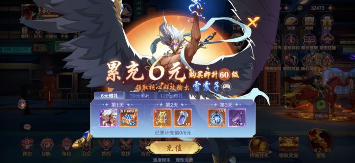 这里做个简单介绍,首充第一天是可以获得雷震子+一个角色直升60级的材料资源,也就是说首充后可以快速与白嫖玩家迅速拉开差距,也给“角色培养礼包”提前拉快了进度。