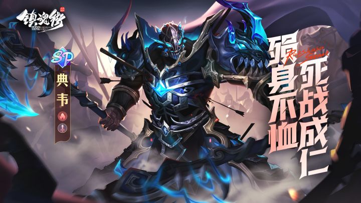 新角色情报 全新SP典韦本周强势来袭角色定位:SP品质火系战魂角色介绍:SP火系战魂——典韦技能解析 向距离自身最远的2个单位丢出短戟形成火轮,火轮对路径上的目标造成伤害,并在到达终点处持续对周围目标持续伤害并打断目标施法,同时对目标施加燃烧效果。火轮停顿若干秒后,飞回到典韦手上。战斗开始时,典韦越至敌方阵中,击倒落点周围敌人2秒并根据目标最大生命值造成伤害,同时在敌阵中心插下大纛。大