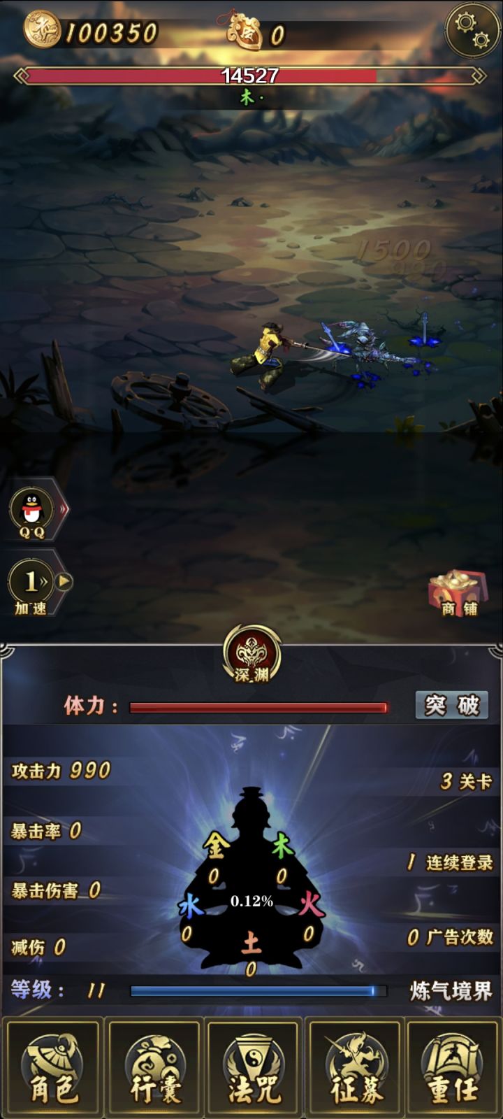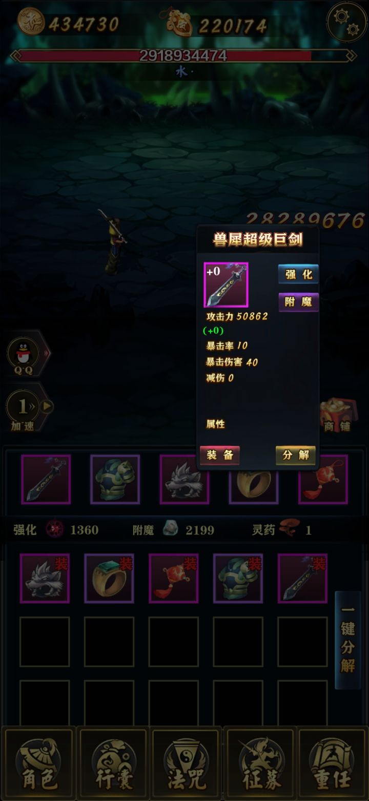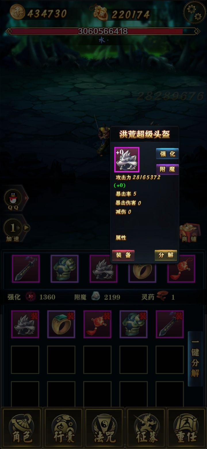 玩了10分钟,总结了一下这游戏的玩法!大转盘给的洪荒装备很牛批,有截图可以自行对比。所以,只需要每天转5次,有洪荒穿上推几张图,没洪荒直接下线。这样,就不需要看广告了,看了也没啥大用。这个游戏嘛,在线挂机没什意思,游戏内容非常少。