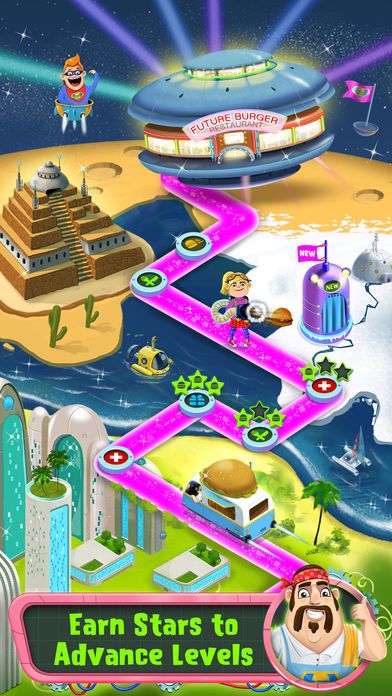 --> Complete 20 levels on this epic journey, as you earn burger stars to advance levels.