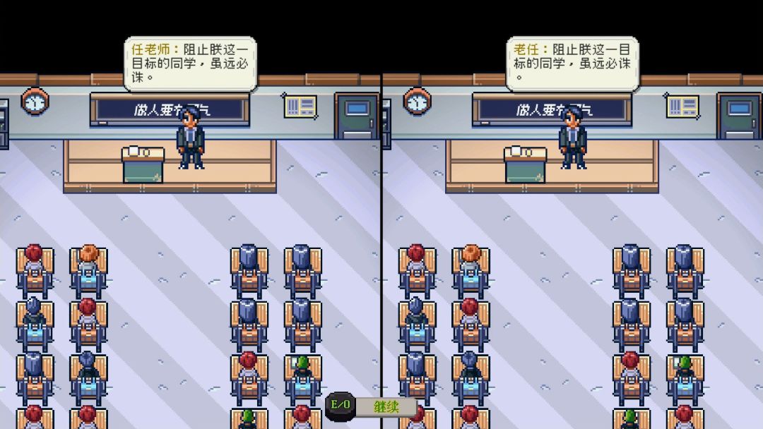 “当自律的我遇上自由的我。”——一款奇异有趣的叙事游戏。我有两个身体,过着两种生活:自律的我负责学习,自由的我负责娱乐。高中时的两个我分到了同一个班级,本来我要讲的两个故事最终交错在一起。在人群之中,我自言自语,自由自在,自暴自弃,直到自相残杀……