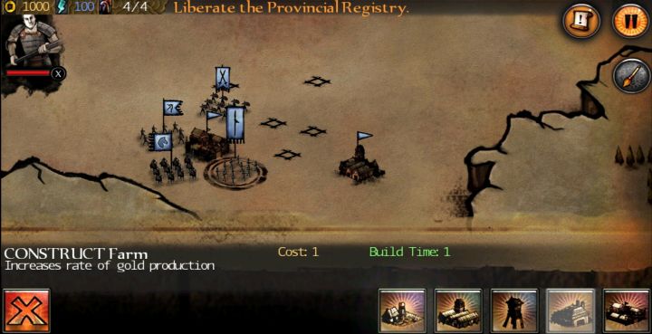 建筑:农场提高黄金产量兵营增加最大单位限额瞭望台远程防御建筑前哨基地产生技能点数和研究要塞能够训练和增援部队兵种及技能:(>,代表克制;<,代表被克制)剑士>枪兵+建筑,<弓箭手技能:放烟释放烟雾作为掩护,使敌人的箭命中降低山崩村落从高处向敌人投掷石块。只能在山旁边使用枪兵>骑兵,<剑士技能:伏击伏击部队挖洞躲藏,不断骚扰和减缓所有进入选定地区的敌人盾