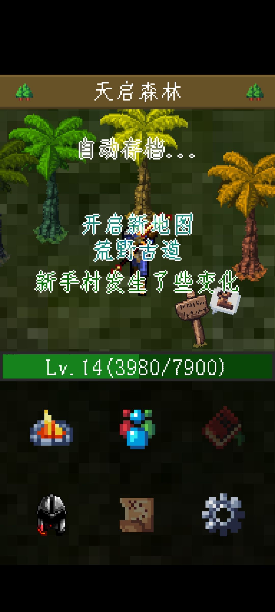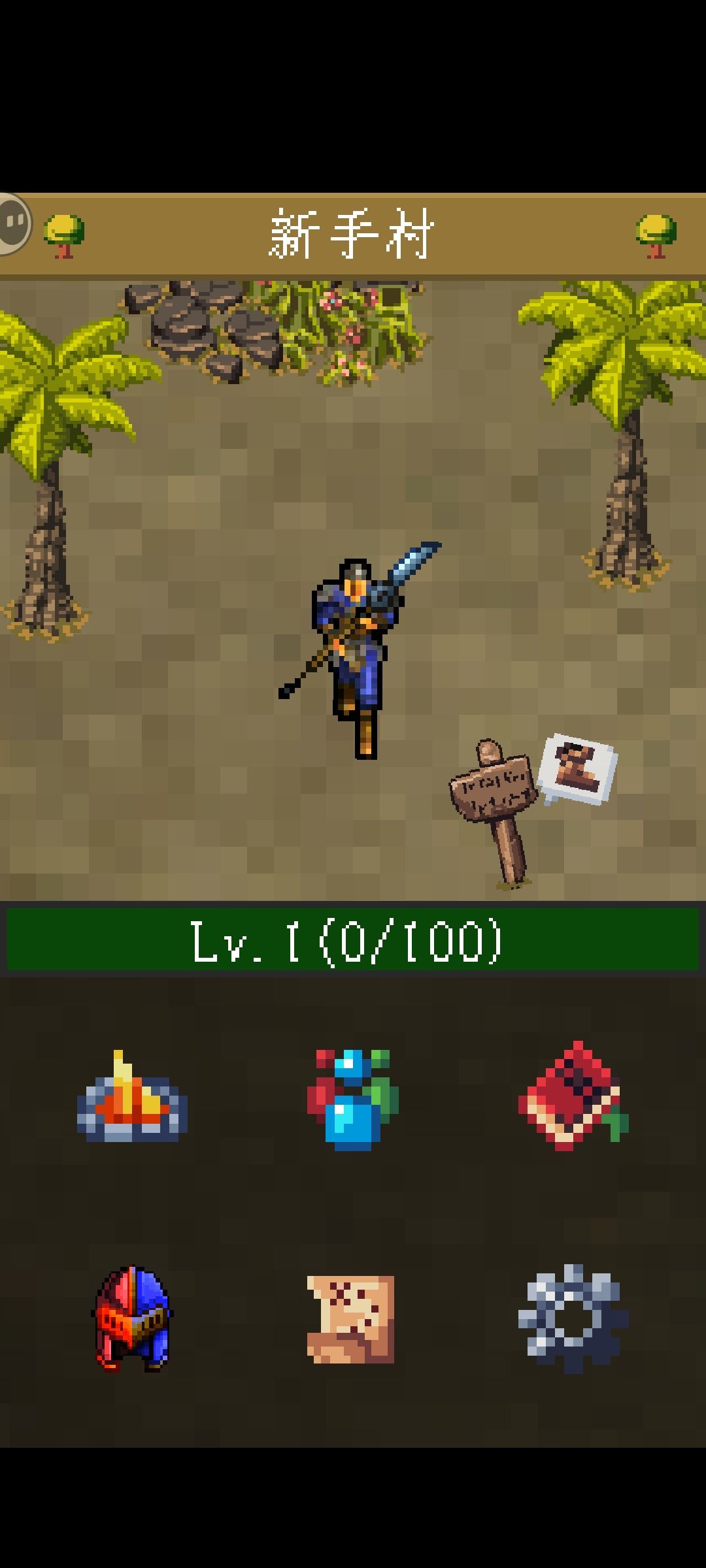 作为一个成功通关的玩家,忍不住想要分享一些个人的游戏想法和流程,希望能够被更多人看见。 1、新手刚上手的时候可以先随便熟悉一下操作,不要怕会影响到后面的游戏过程,可以通过齿轮按钮里的重置来重置游戏数据。 2、关于屏幕下方的六个按键,一上篝火是地图、 二上瓶子是药水商店、三上书籍是技能池、一下头盔是属性面板、二下卷轴是任务单、三下齿轮是一些设置。 3、初期流程。 新人玩家刚开始点击屏幕里告示牌就可以