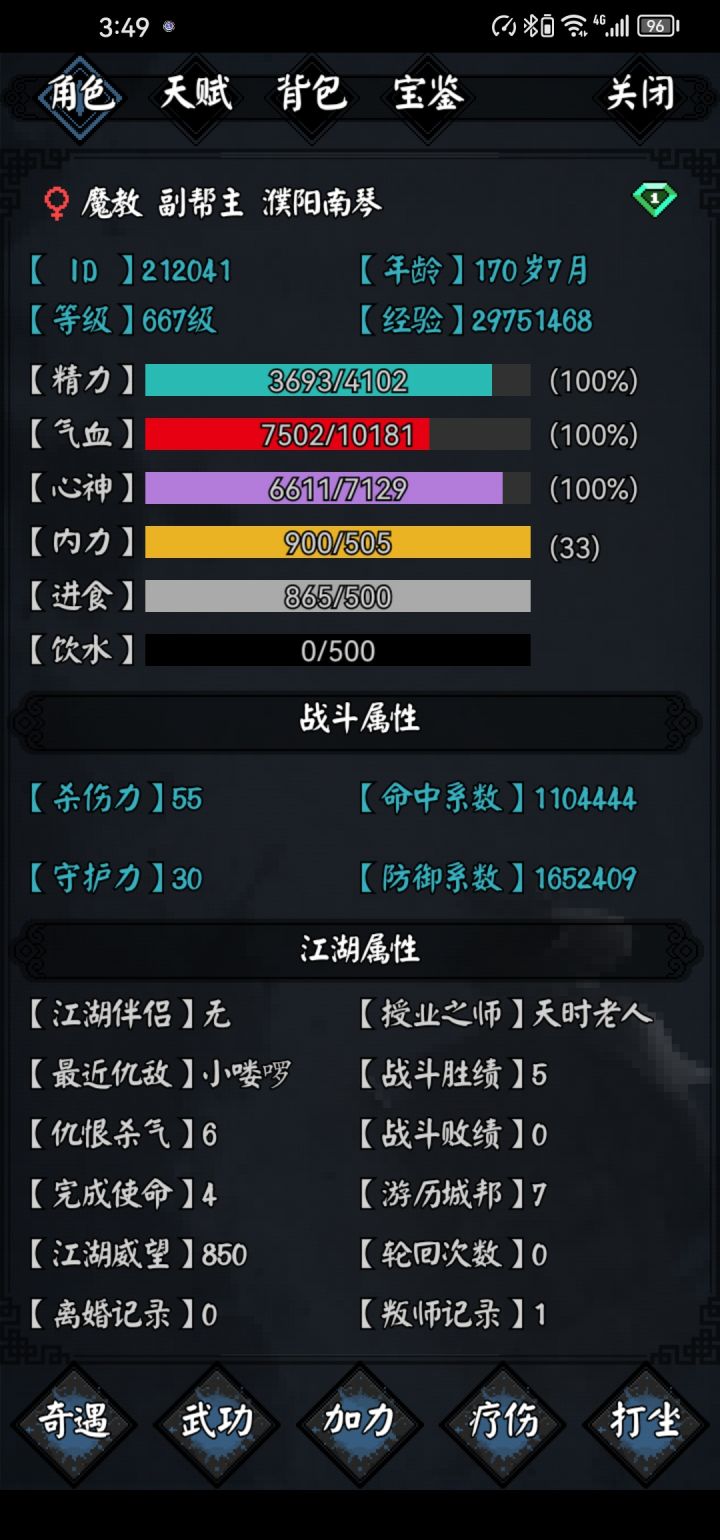 第一次玩游戏写这种,算是攻略吧,请诸位多多指点。闲话少叙,武当入门拜石雁(古龙小说《幽灵山庄》人物),新手送的元宝很多,直接商城买人参果,潜能多任性,技能可以学满,我是玩拳的,拳头才是硬道理(小虾米野球拳,第七种武器的一种说法也是拳头),三才剑法也还行(应该是三人以上发挥效果最好,问题目前还是偏单机),就是特技太难解锁,要易经185级,因为读书识字能学的极限就150级。石雁学完拜真武帝君(武当