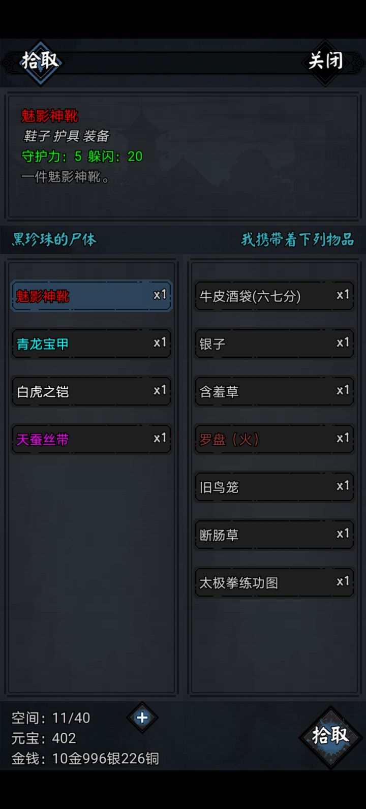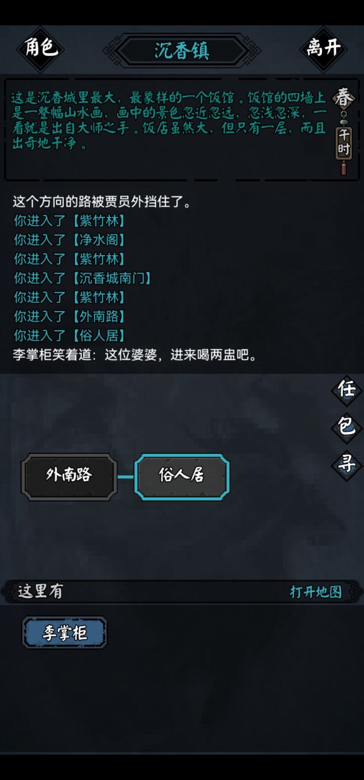 开局按流程后会有人叫杀你,你点逃跑跑不了,多点几次就可以跑掉了,几率较低,成功逃出后背包会获得怜花宝鉴,可以读,解锁怜花宝鉴(拳脚,内功,轻功,招架)