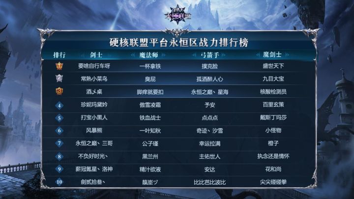 《永恒联盟》2月各职业排行榜强势来袭,让我们一睹各区大佬风采,如果大家有其他想看的排行榜也可以回复我们呦~我们将尽量给大家展示出来~