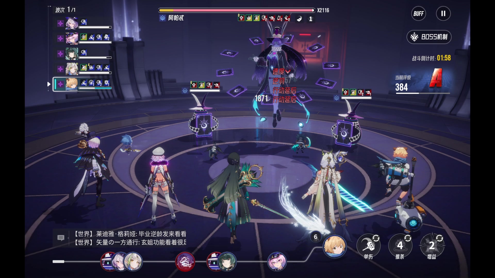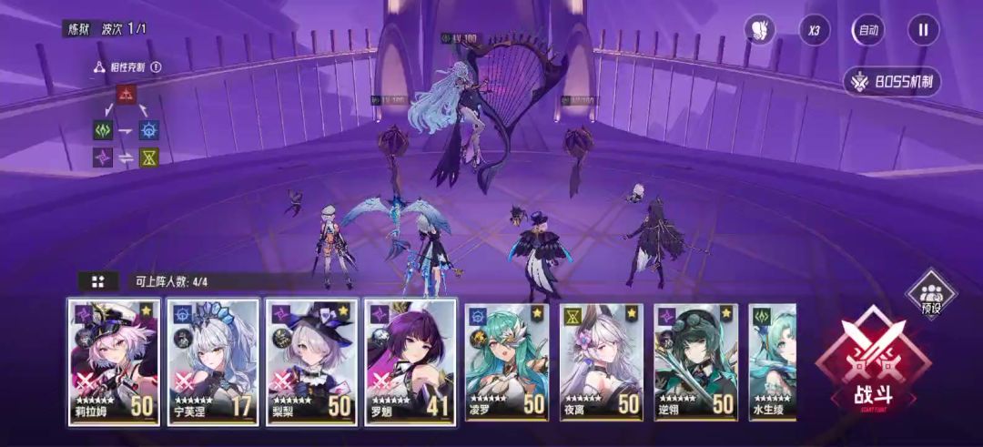 哈喽,这里是卷纸!今天给大家带来伊瑟日常副本Boss的攻略,攻略对象:噩梦级副本Boss莎朗。先来了解一下莎朗的关键技能: 1、自带拉条速度极快,并且技能有推条; 2、伤害技能附带DOT伤害; 3、我方每受到一次dot伤害,Boss伤害提升5%。 所以,首先,我们要有净化或者免疫角色,可以净化dot或者免疫dot,又或者队伍平均效果抵抗较高,只要不要频繁的触发敌人的dot伤害,Boss的伤害不算高