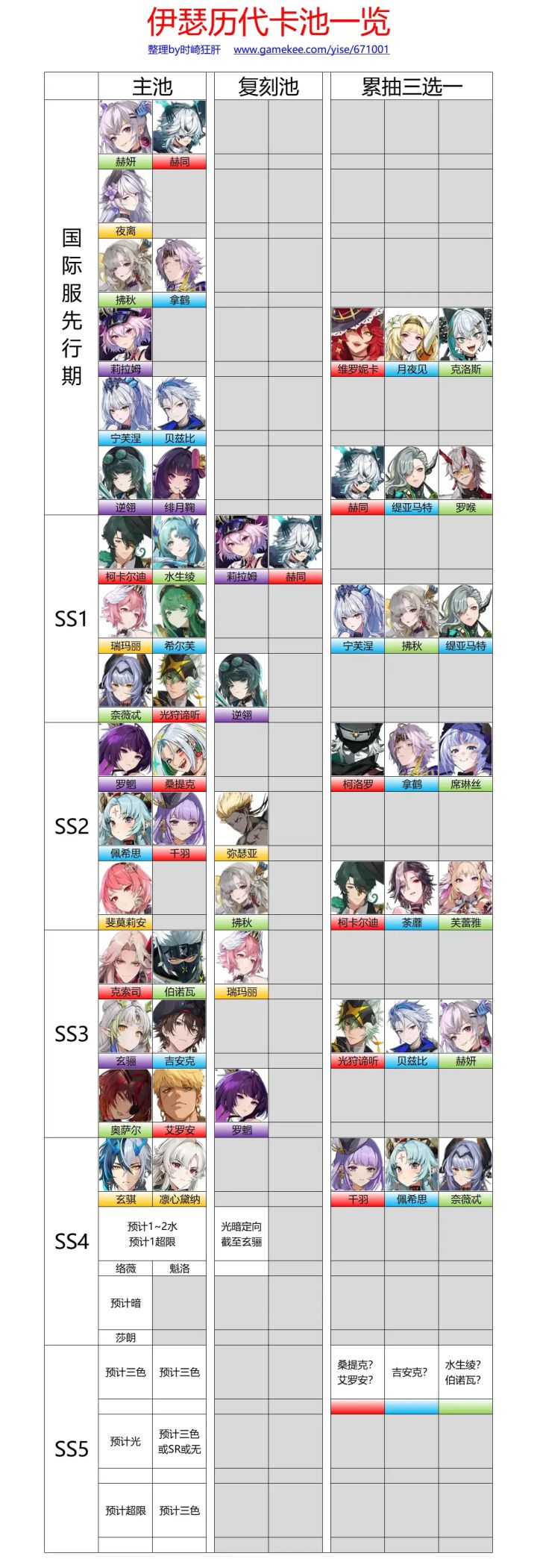 【考古党】伊瑟历代卡池一览