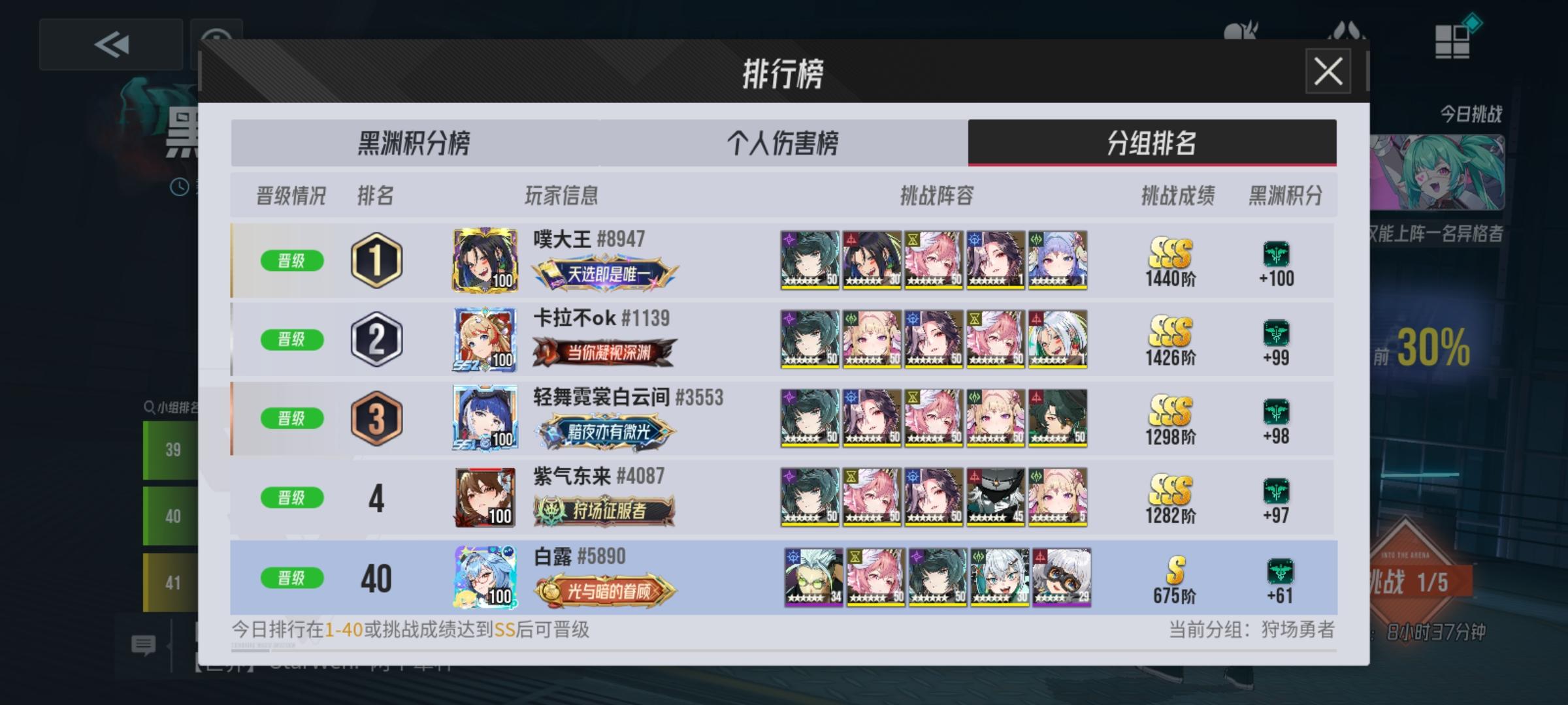 #伊瑟 #伊瑟ss2赛季 黑渊狩场沙朗。纵然是最难的沙朗,即便我们只有平民装备,只要我们调整好,依旧轻松SSS。除了千羽1命和方格斯,其余都0命座,也不需要特别喂金块
