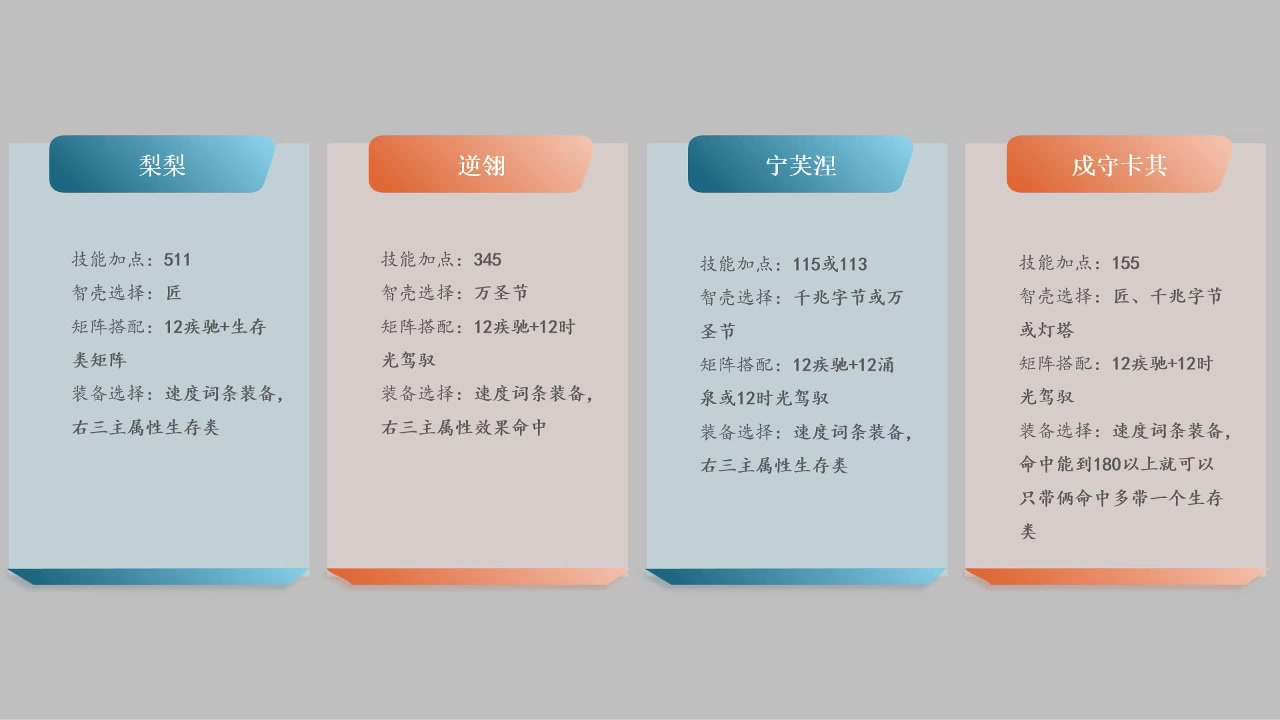 阵容:逆翎+梨梨+宁芙涅+戍守卡奇+谛听 通关要点: 1. 必须保证阿帕忒召唤魔偶后逆翎是1动或者2动,此时逆翎必须能够释放3技能,第一波魔偶中左边那只必须驱散护盾挂上DB,第二波魔偶中右边那只必须驱散护盾挂上DB,第三波魔偶中右边那只必须驱散护盾挂上DB。 2. 三波魔偶一循环,第一波必须击杀左边魔偶,第二波必须击杀右边魔偶,第三波必须击杀右边魔偶,击杀魔偶的时机必须在阿帕忒行动之后,基本上一个