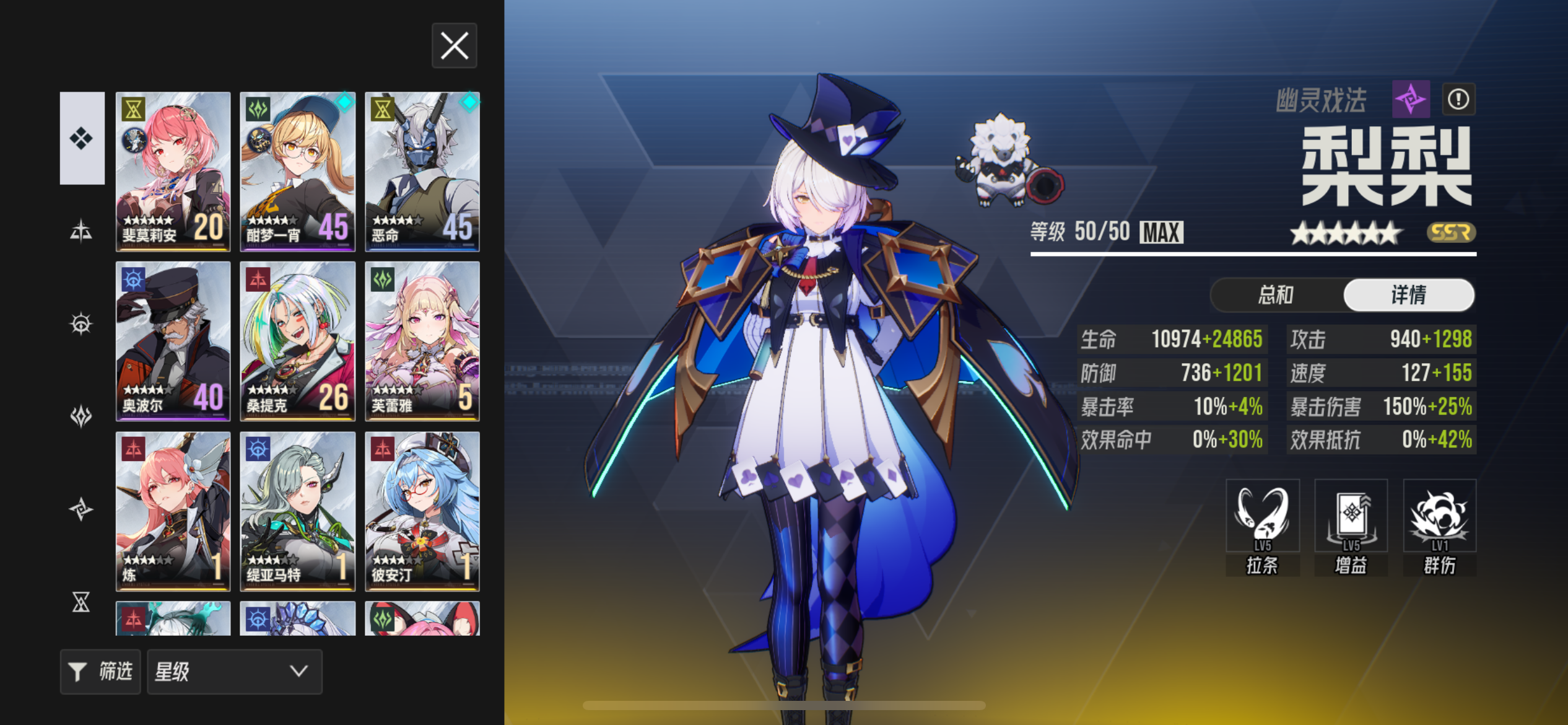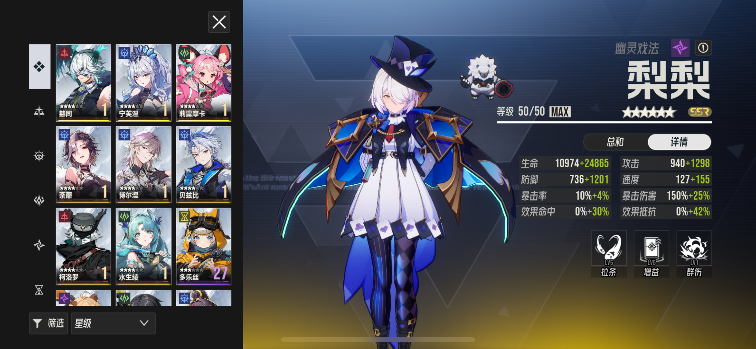 面板很不错 近似玛丽的身材 坦度可以 基础速度125 可以做高速 三回合的大招 给速控压力很大但是贵 浴血155启用 做高速要555 不知道自身被附加减益叠不叠追债