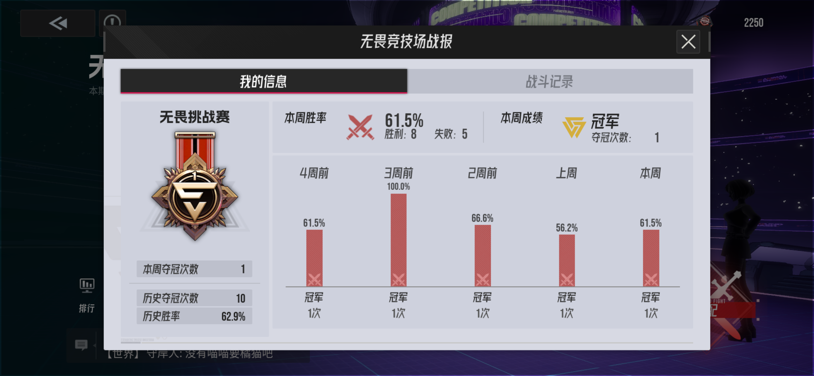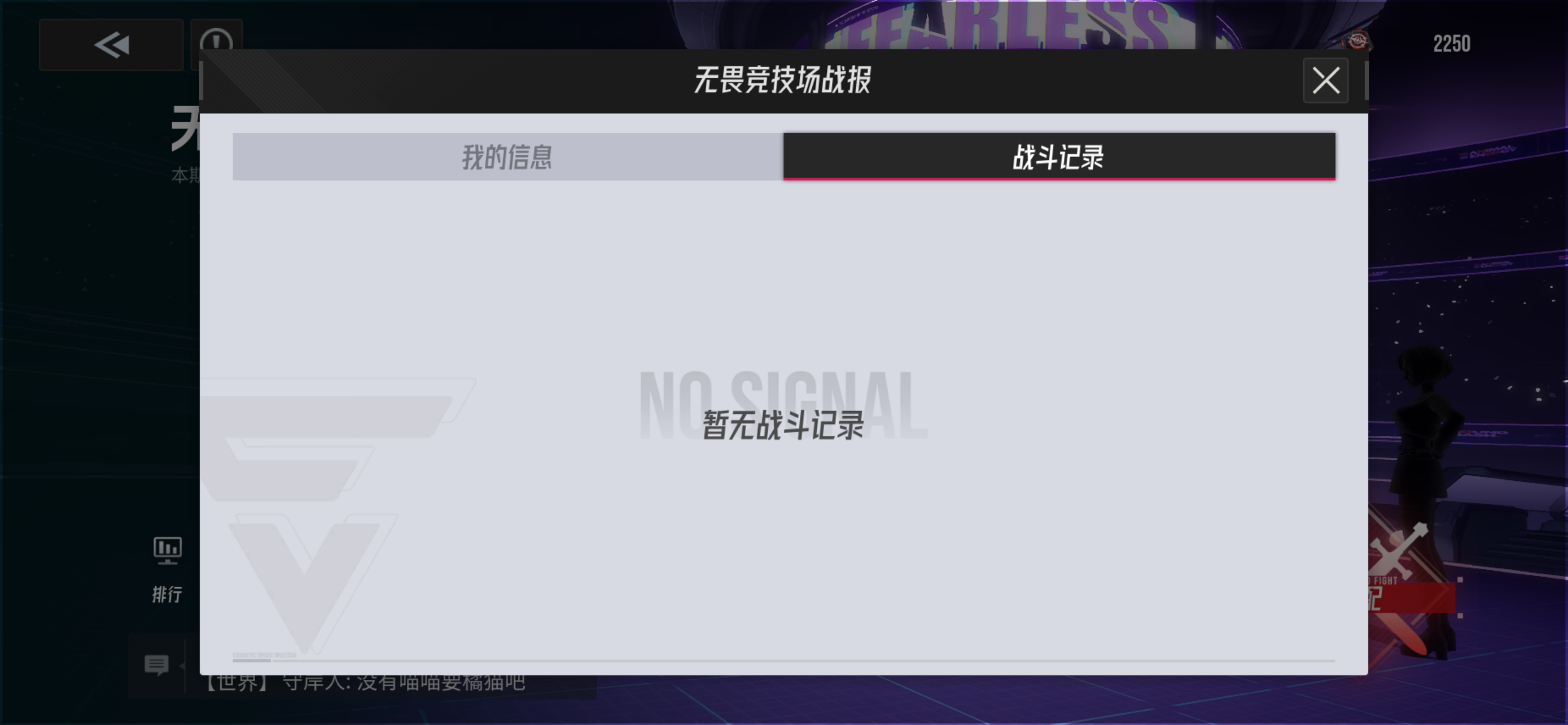 无畏竞技场,无战斗记录了