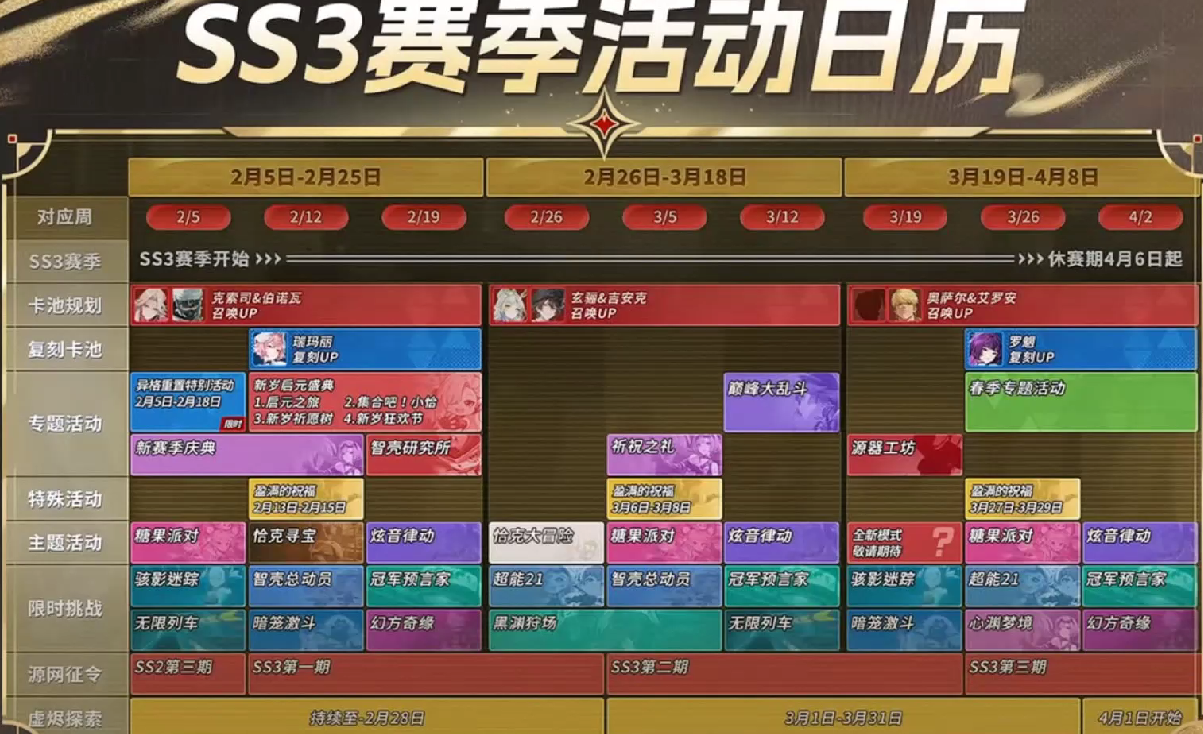 按视频顺序:1、新增超限·原相异格者,新增觉醒SR缬草,莉天帝新皮(视频中难以想象这是26年)2、新赛季签到送超限原型,智壳皮肤自选,模组自选,往期3色自选3、巅峰大乱斗模式提供3个满级满技能角色给你试玩体验4、超限·原相异格者,克索斯,火系,生命型输出,专属被动,顶替他人回合,为团队提供支援5、伯诺瓦,攻击向输出异格者,专属被动提升单体额外伤害,长线输出手6、排期,2月5克索斯+伯诺