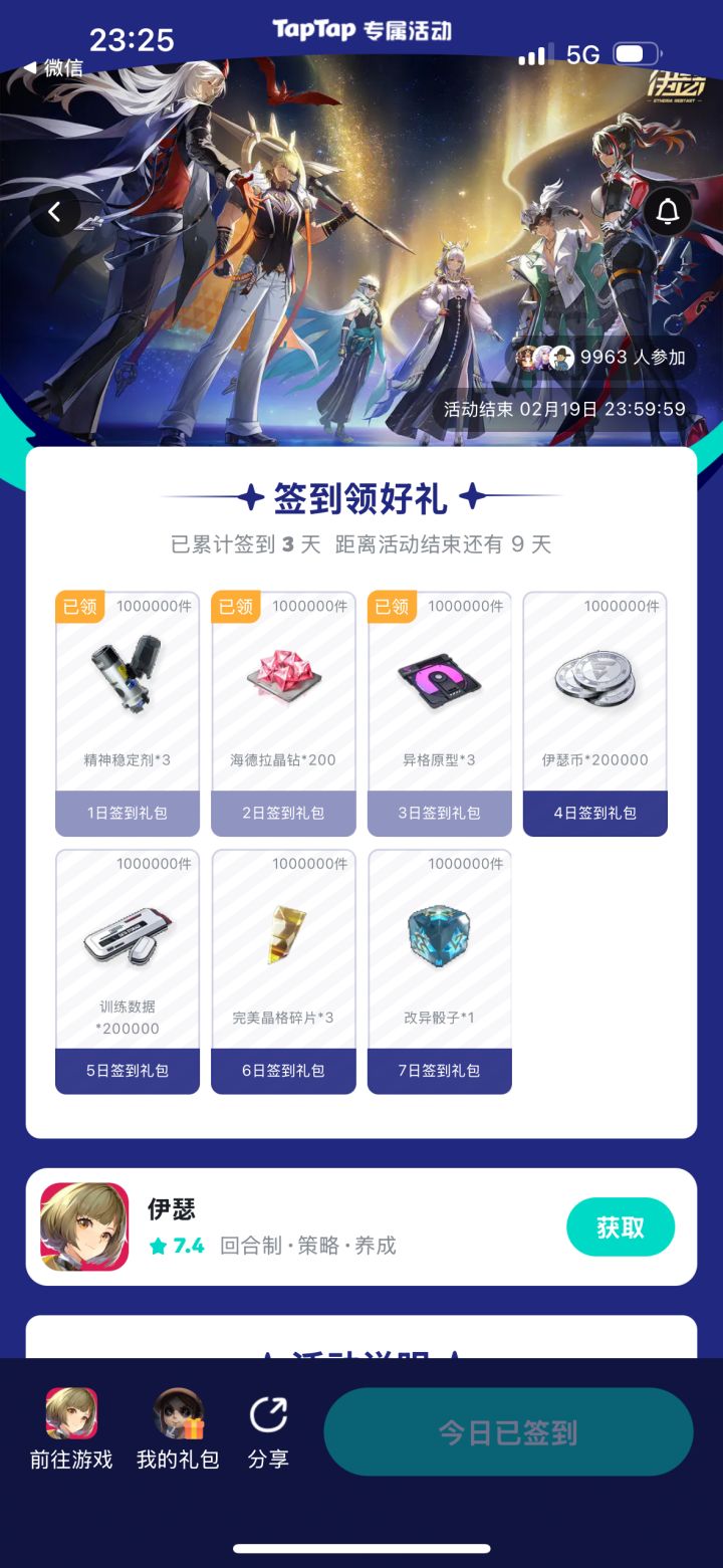 https://www.taptap.cn/events/game-sign/47rw09ab?utm_medium=share&utm_source=copy&share_id=7372C83EB5F0才知道还有个签到 #伊瑟 发个帖提醒自己别忘了