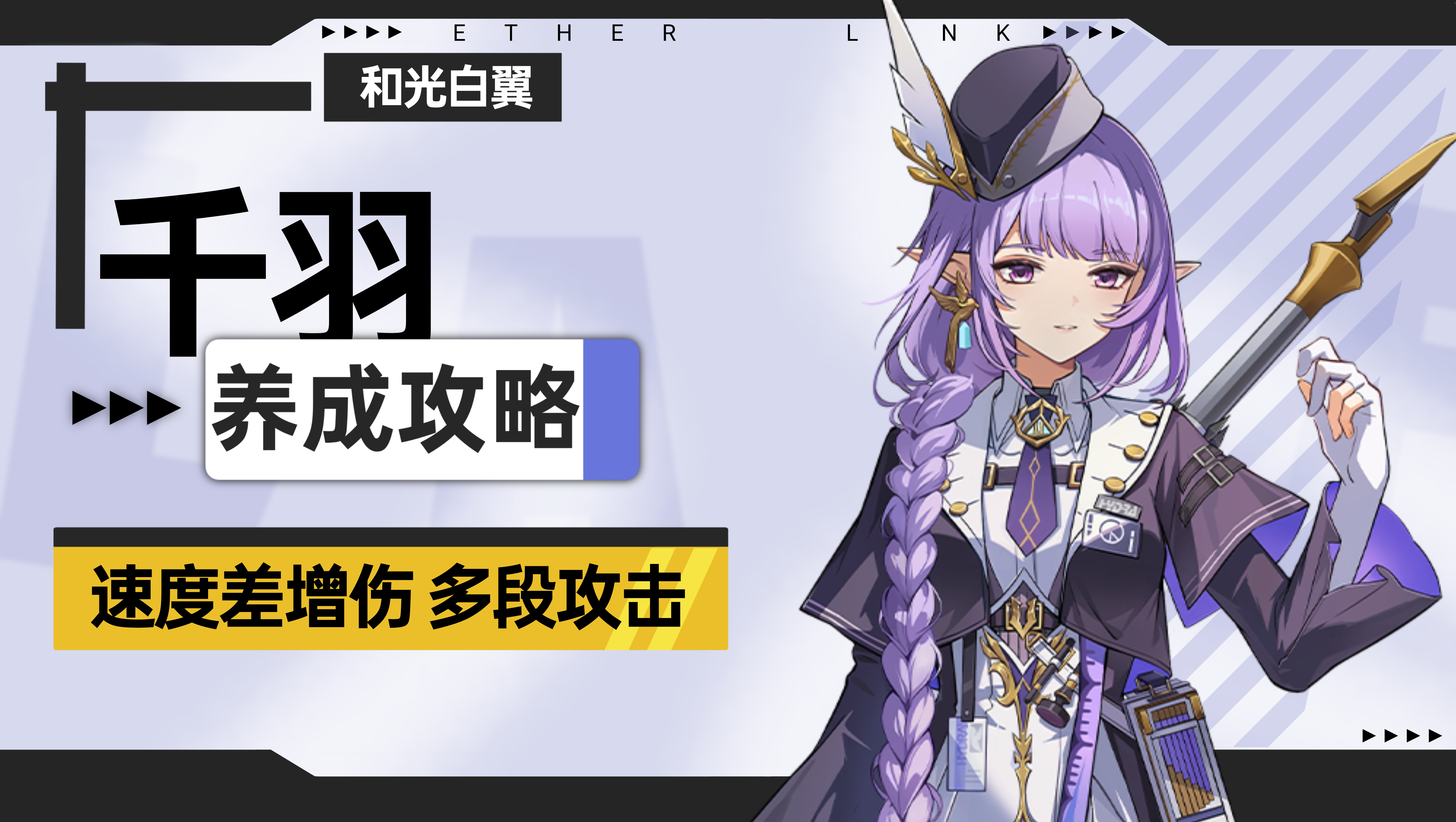 哈喽大家我是lala,今天我们一起来看看新异格者千羽~一图流:一、角色概论先说总结,千羽能够根据自身与目标的速度差增伤,还能够为友方附加免疫效果,十分强力二、技能详情普攻—旋光羽千羽对目标造成2段伤害,自身速度每高出1点,普攻增伤0.6%;最后一段伤害暴击时自拉条15%被动—光翼守护千羽行动后为自身附加一层光翼,点满后若未处于不可行动状态,额外附加一层光翼;为队友附加一回合免疫,被