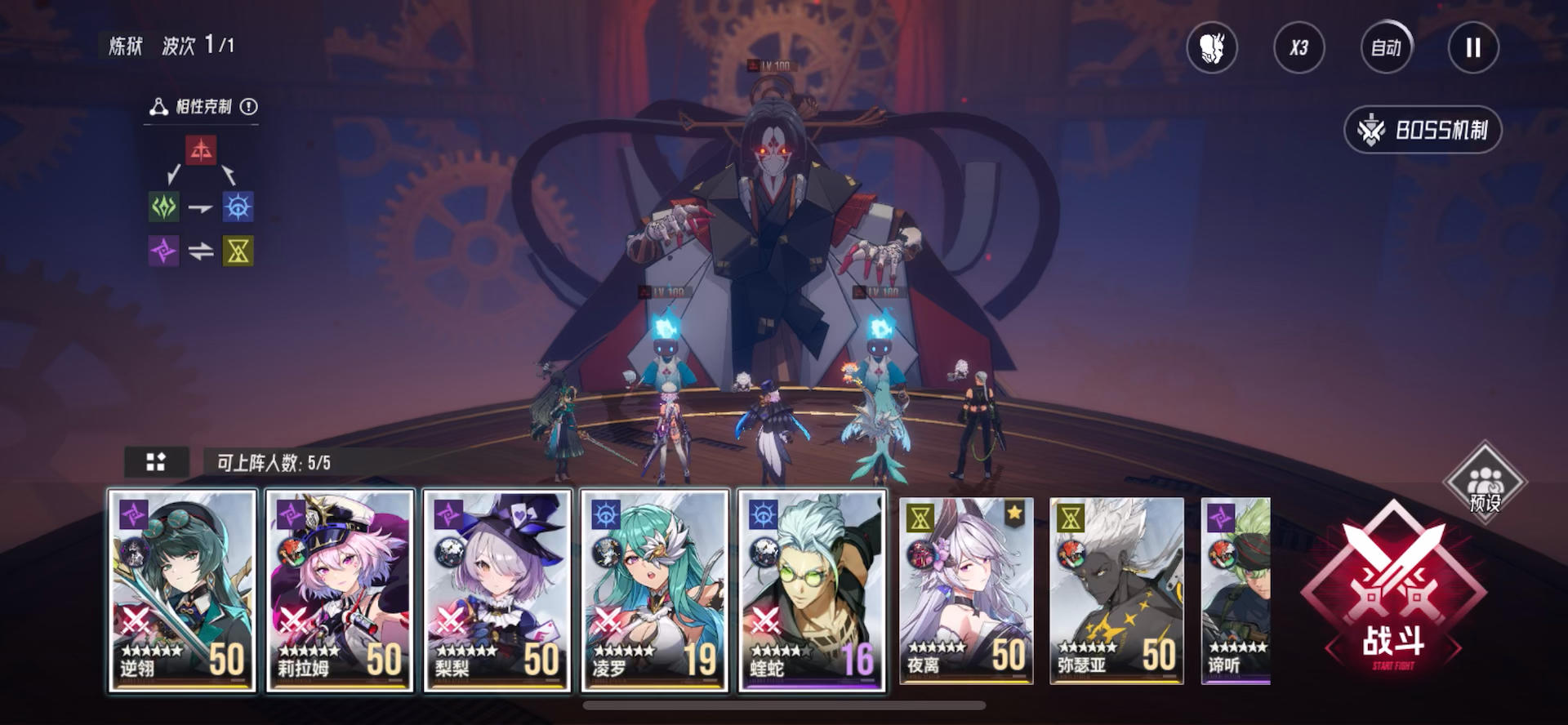第一梯队第二梯队第三梯队的玩家想必很轻松地打过了……群里一个养成路线有点小错误的群友说打不过我帮他打了一下顺便做了这个保姆级攻略首先是阵容1.梨梨(不可替代)技能等级511 智壳千字2.恶命(不可替代)技能等级555 智壳匠3.叶离 (其他输出也行) 任意输出智壳4.逆翎(其他辅助也行) 智壳匠(练度不够的,最好换成保命的辅助)5.绫罗(其他免疫也行) 任意智壳(如果真用绫罗,最
