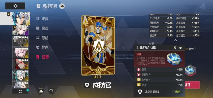 拉了515佩佩,也是直接连胜上传说,目前刻印升戍防官,光执事,5红元件,但是有2个是重置的,只打造了3个,平民这赛季打rta简直地狱级难度,佩佩,黑妹这赛季强度非常高,没养这两张卡让对面选了非常难打,光枪这赛季推荐智壳带最强音(奋进 浴血 巨壁),词条洗生命加成,抵抗,洞彻,刻印带光执事,源器右三件生命加成,面板抵抗140以上,完全不怕被罗网锁
