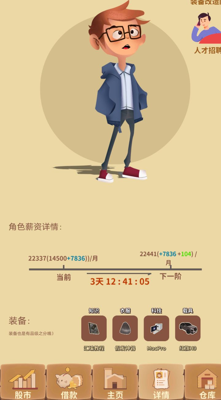 新人开局怎么玩,详细内容尽帖观看,进游戏的话是先尽量爬塔解锁现实世界,然后选大学生开局,后期更换为程序员,然后再用新手送的礼包送的装备,然后买几个基金把券吃掉,再把基金卖掉,30秒钟就可以卖,然后购买装备尽量,加班一次购买一个装备,装备有加成,加班到可以解锁股票开户就差不多了,然后的话在股票上有人在群里面带的,记住加班的话,不要加到80以下生命值,咱们的生命值也可以通过看广告,可以获取矿石,然后来购买生命值的,或者是用金钱来购买的,大概玩2天差不多了都,还有更好的开局,那个的话和这个差不多,反正我一般都这样的,因为我是玩股票的,所以一般都是直接加班完,直接冲股票😁,想和我一起玩的,进6区,然后加群,进6区的群,群里面一般都会带股票的。