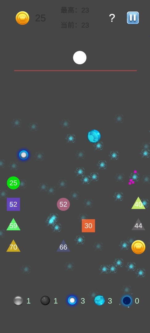 新增小球具备高攻击潜力,如果魔术球摧毁了一个方块,那么就在该方块的位置生成一枚金币。