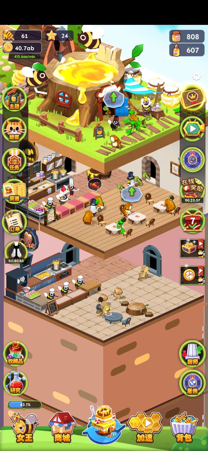 挺好玩的,无聊打发时间挺不错的前期保证蜂蜜跟上餐厅单子就赚钱了订单是可以制作多少份这很省事而且有的顾客会给一些碎片收集的一定要做有钱就升级蜂巢蜜蜂花圃速度餐厅、甜品蛋糕该升级的升级研究的别落下离线了也能赚不少