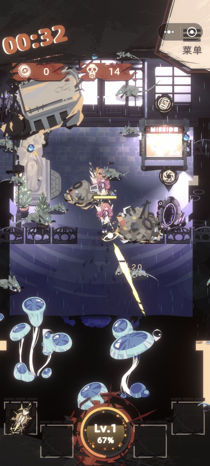 最后一点是养成系统。这套系统是20分钟所没有的,但是我更偏向于没有养成系统的做法,毕竟作为一个割草游戏我个人更喜欢快节奏的、随地开一把的模式,而不是要花时间去提升通用的加点属性。这个问题可能见仁见智吧。