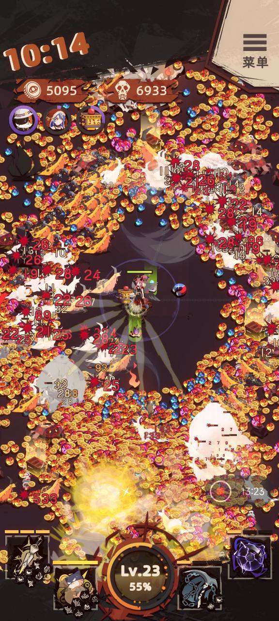场均10w 随从想刷就刷! 最新更新在最下面 先说下思路 圣光击退+禁锢保命挂机 撒币猫猫击杀后掉金币是主要金币来源 需要注意的是猫猫重铸后就不需要再吃金币经验了 大概在11分钟的那个狂热要吃个磁铁把金币经验全收掉 地图选择噩梦地狱表层,记得开险地权限 人物选择奥罗拉 核心武器是圣光和撒币猫猫 圣光的词条选择:散射 禁锢 CDx2 击退x2 这里说下两个击退对于挂机是非常必要的,只有两个击退才能击