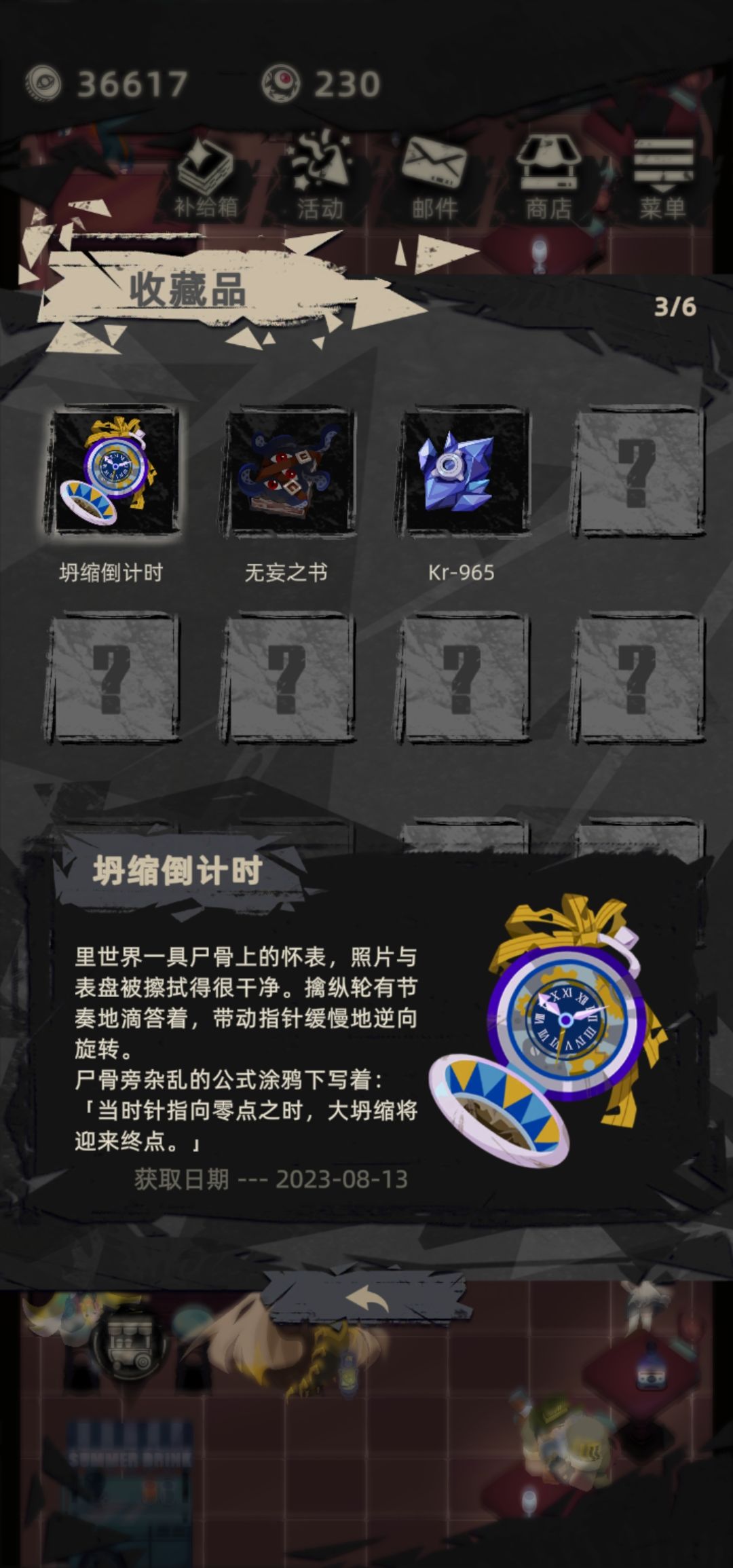 逛了一圈好像没有人做收藏品的攻略,那就随缘分享一下 需知:收藏品不会离出生点很远,如果没找到就是走远了 1.坍塌倒计时 (里世界) 也许是大部分人的第一个收藏品,具体教程可以看人偶少女的解锁方法,这里不再赘述 #突破黑暗#人偶少女薇的获取方法 - TapTap 2.无妄之书 (沼泽) 在签到第七天解锁章鱼妹后对话触发委托,来到普通难度的沼泽,地点是出生点左上角的触手沼泽中间(忘了截图)回来后有艾西