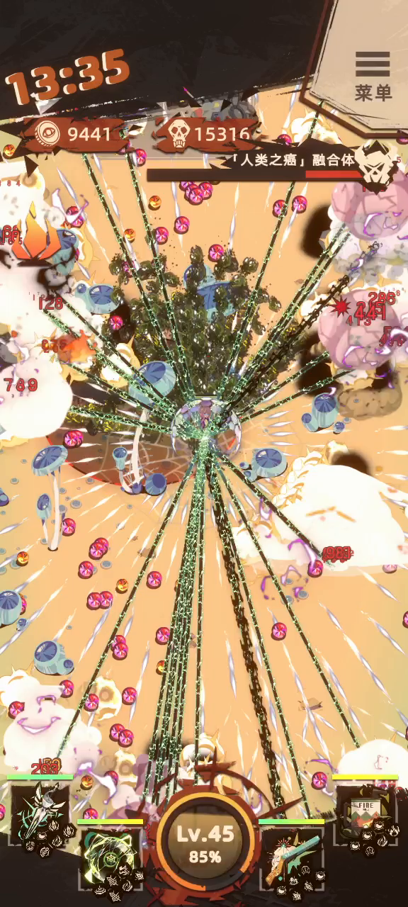 红圣枪+紫电弧+绿风杖+绿触手=让怪自己动
