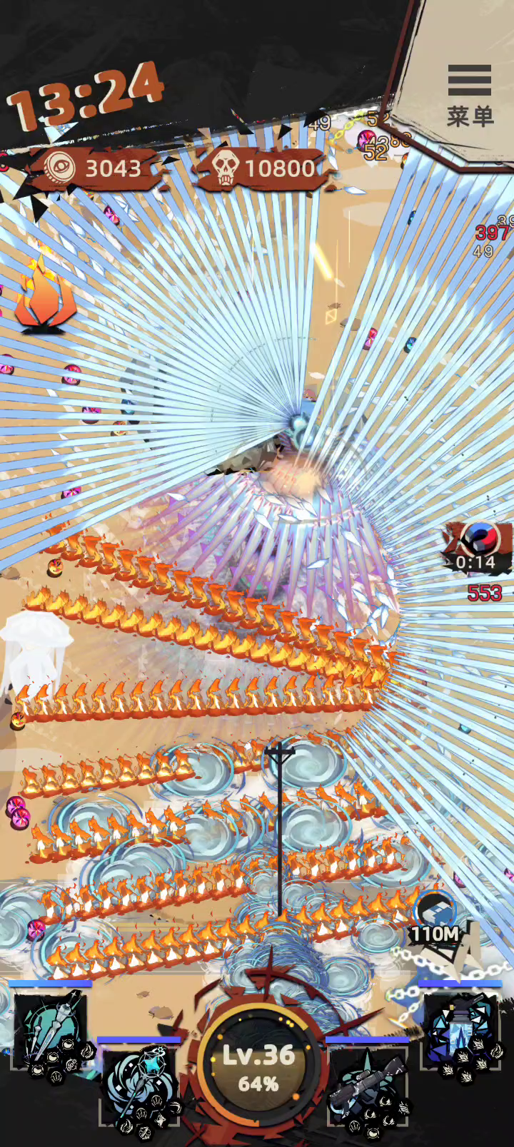 萌新才玩,没有花里胡哨的特效,小旋风分裂,伤害离谱。