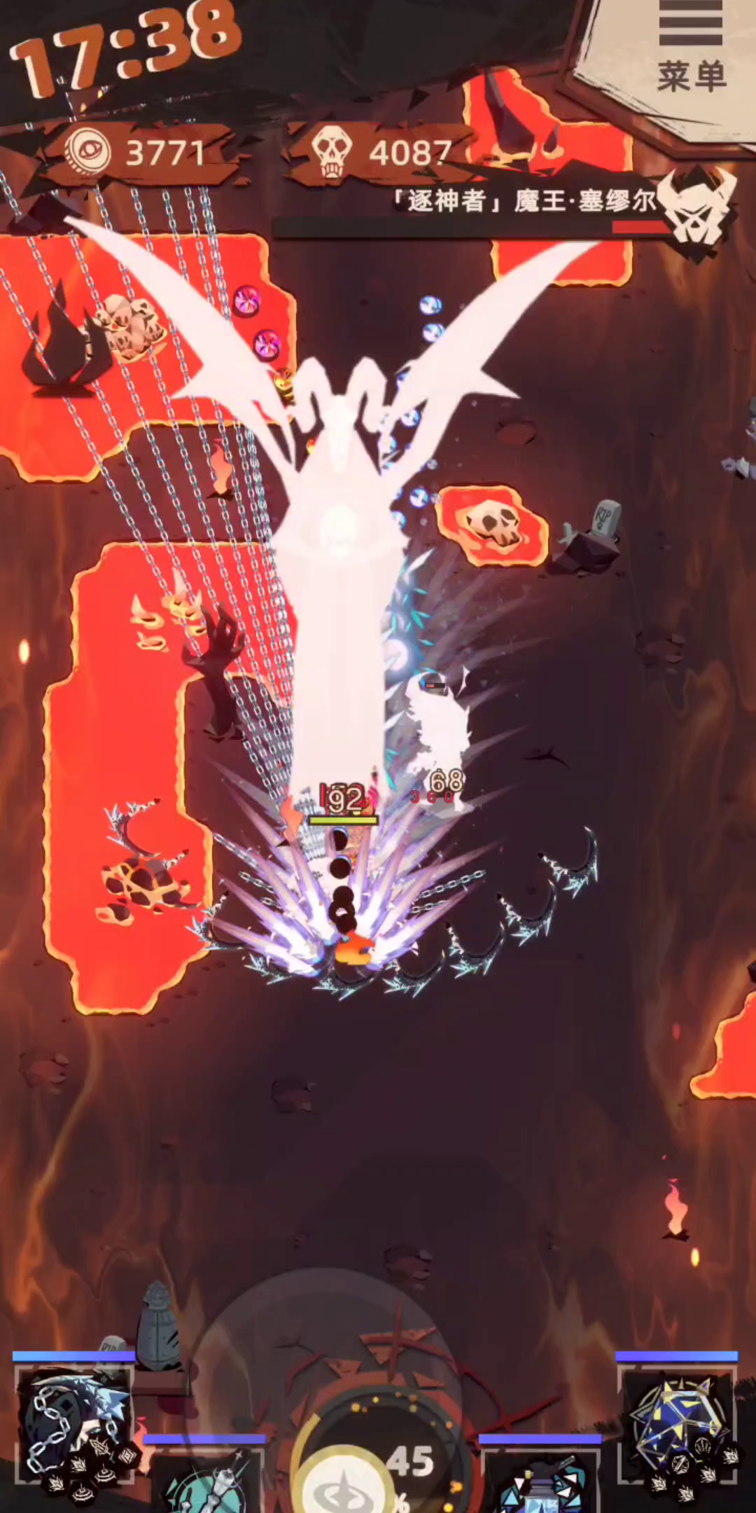 😁满套都只能挨揍 我还基本都点的加伤害 。。这模式那个升级的祝福失效不能用 太难搞了 范围都没 速度也没