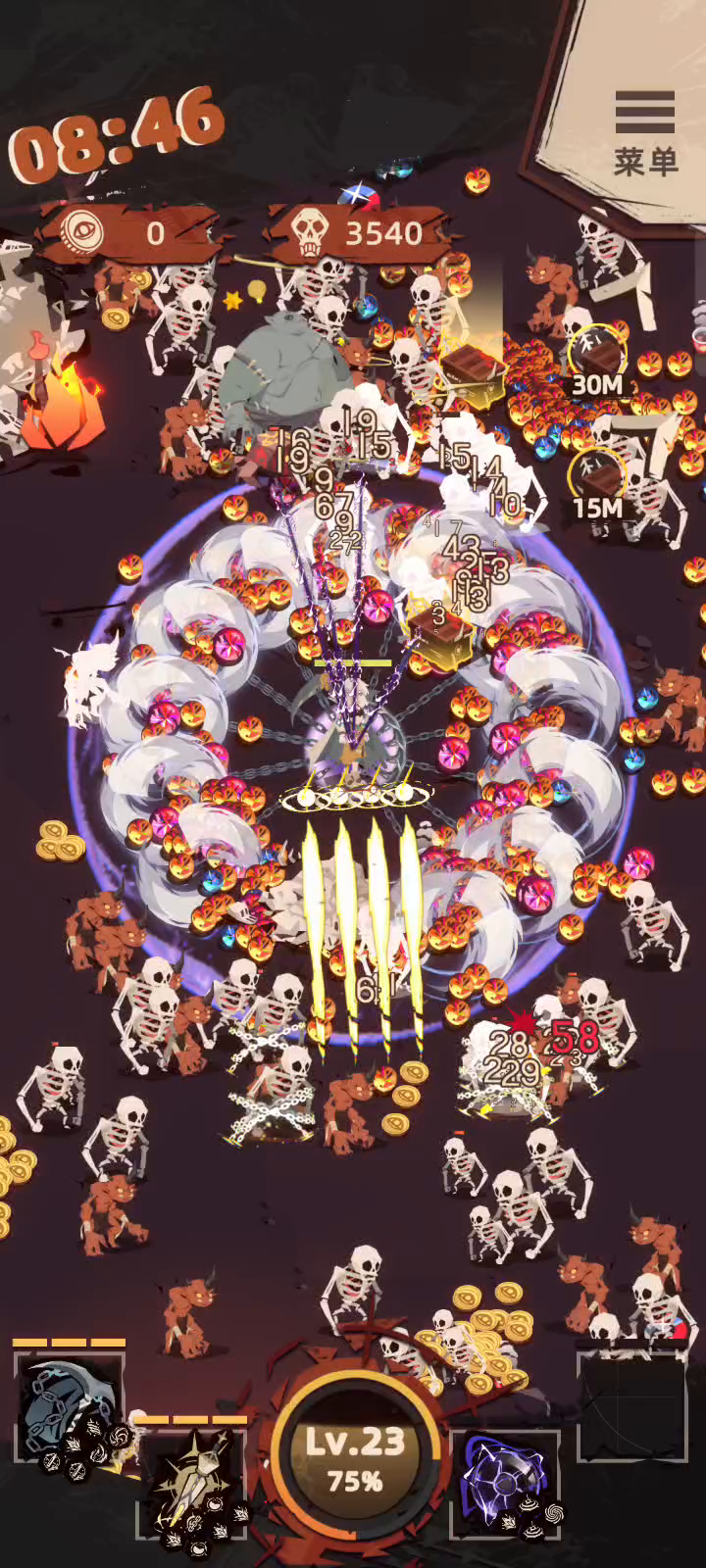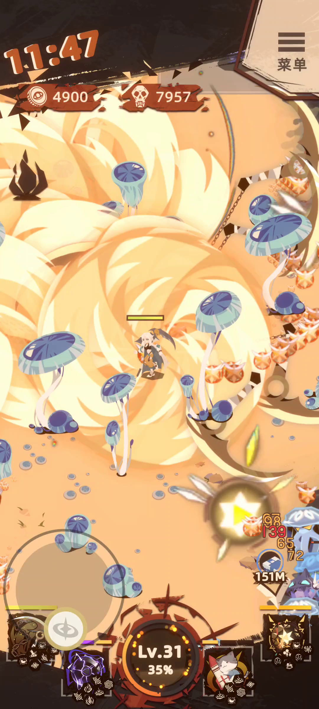 自动吃魂还能保命,挂机就完事了动一下算我输😂就是金币少了点一局才三万多,带蓝火为了后期溜boss玩😁雷霆战机不动则已 动起来影子都看不到🌚