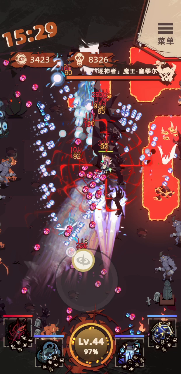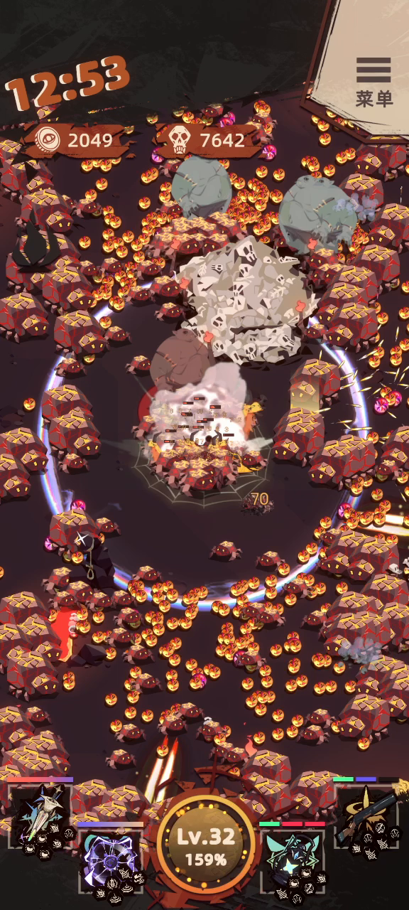 😂萌新表示…我可以挂半个小时…睡一觉再来嘛?只有初始三色…初始装备…雕像也没点…全部选绿色…配件全部选释放间隔就完事了…