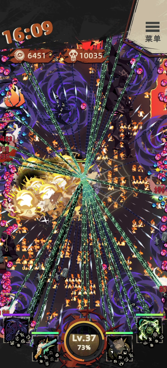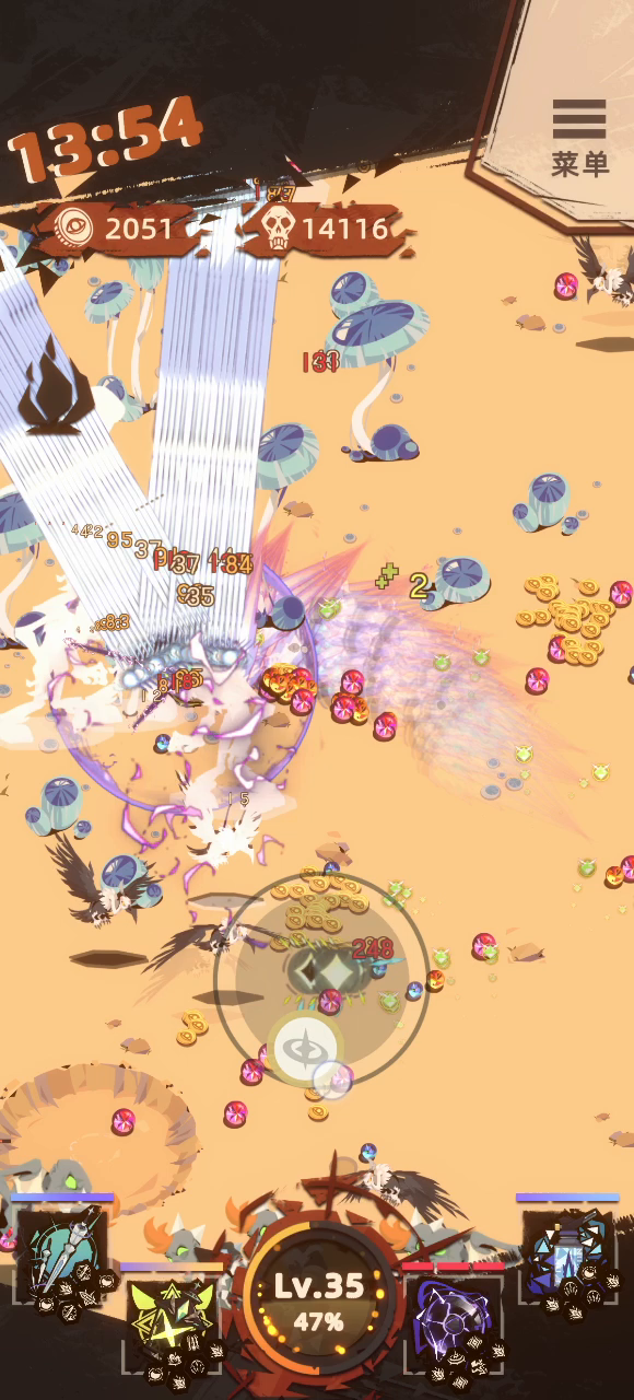 主要配置就是金镰金电金酒金风,刷钱打伤害两不耽误。 前期先做出金镰快速扫怪吸经验,天赋点频率数量尺寸,金酒有位移控制全屏轰炸并且伤害受金币数量加成,金电带尖啸涂蜡眩晕打控制,点数量尺寸导电,金风点数量分裂尺寸,刷怪效率高且能快速刷钱提高金酒伤害。 如果怕最后打boss伤害不够并且击退足够不需要控制的话,可以把金电换成金炮,带追踪点数量伤害分裂,金炮的伤害也受金币数量加成,拉好距离等子弹全部分裂完追踪打boss可以造成相当可观的输出。