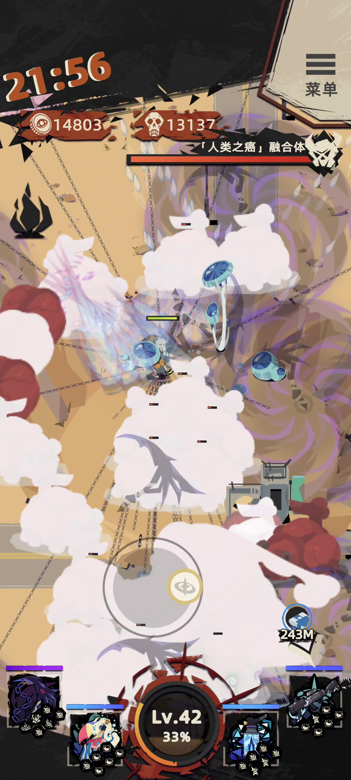 整活第二弹,觉得挂机刷金枯燥了来试试这个快乐,比较废手😎只要我跑的够快,能量球都追不上我~镰刀可换成血刀增加续航,另外香槟换成没人开发过的蓝色电圈,可能有奇效,红色精华优先每秒回血,绿色可选防御精华,蓝色可选移速闪避,总之当个快乐风男往前冲就对了