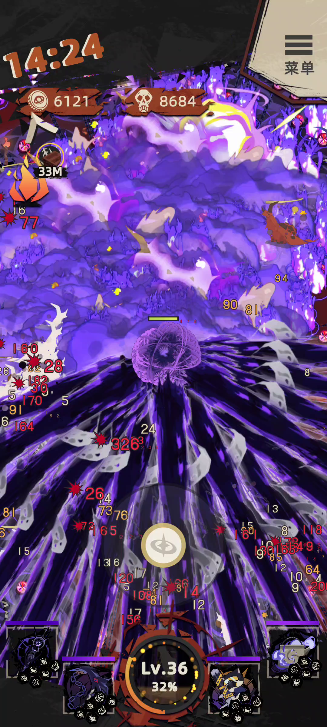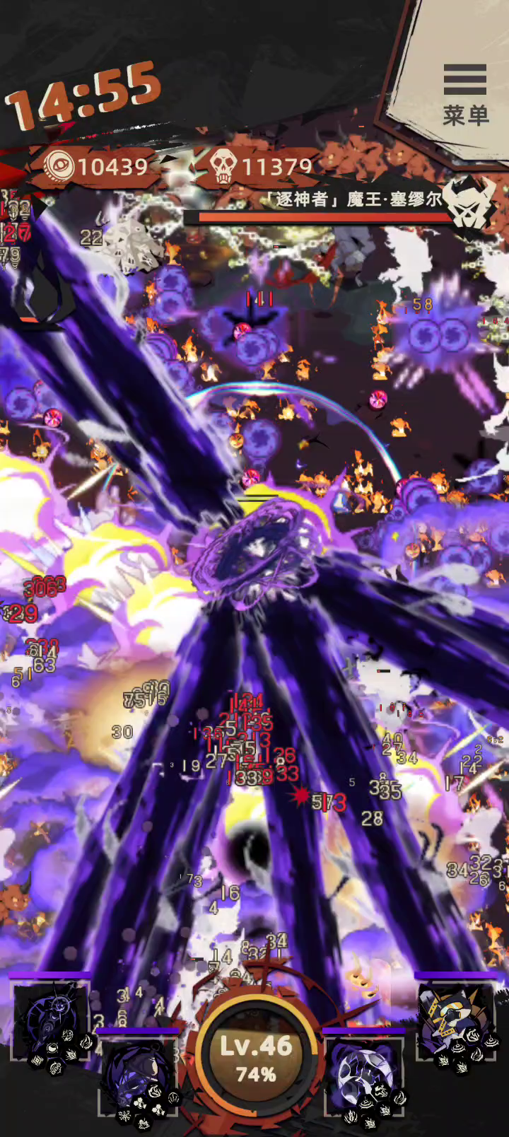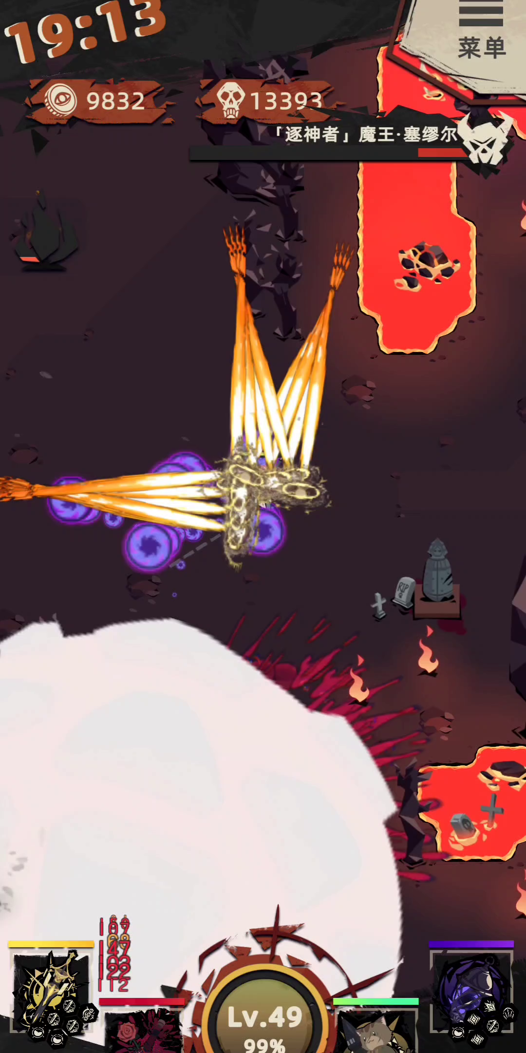 全屏都是,紫色套装光污染真强,不过最后都可以站撸boss,攻击也不错