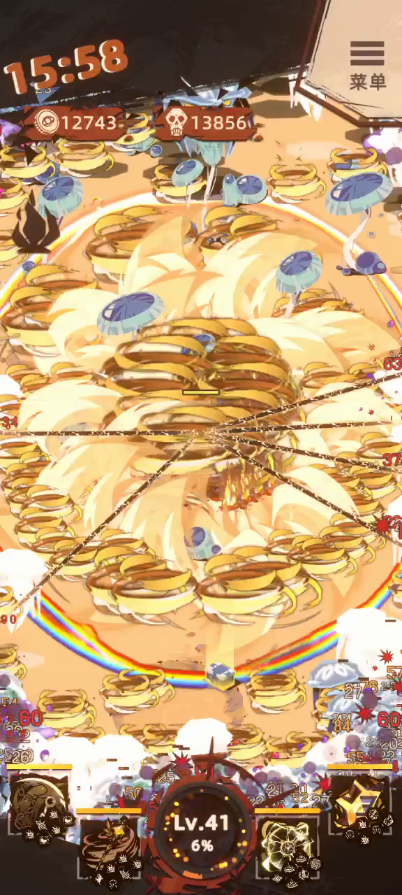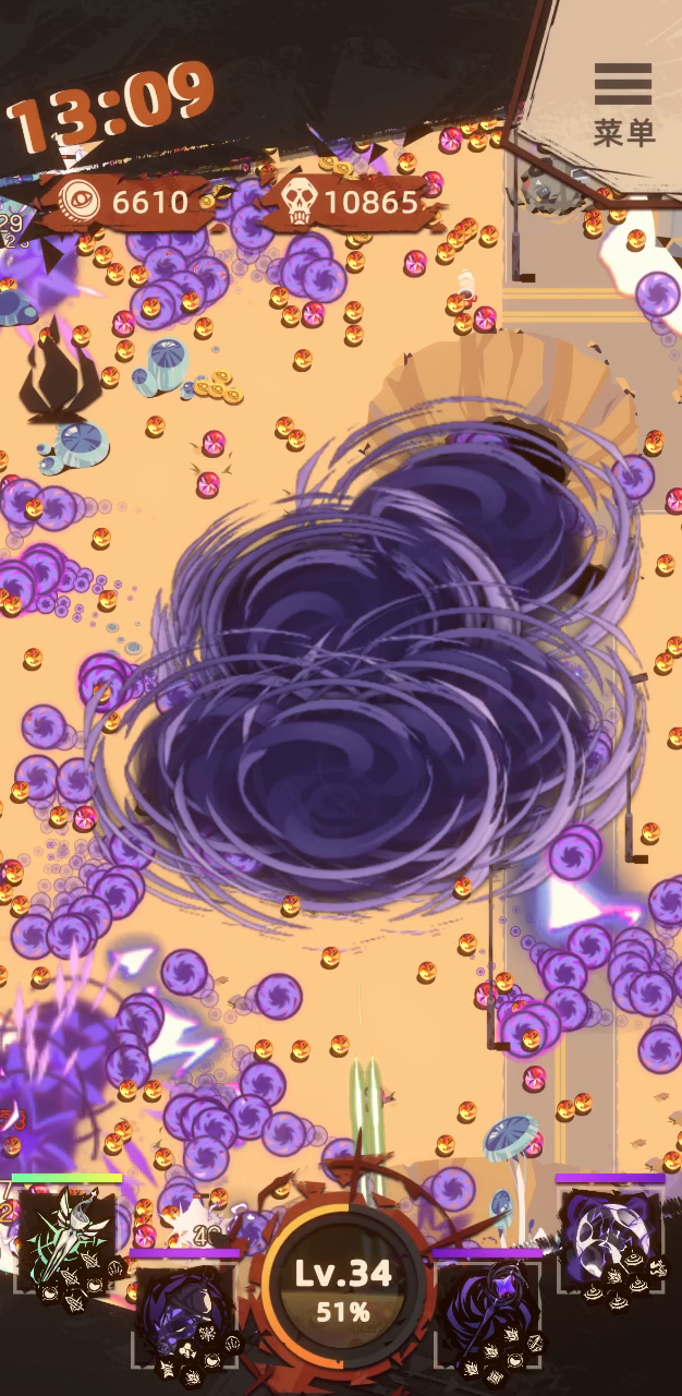 角色是泽德 紫镰刀(弹弹弹),绿电网(攻击视野所有敌人)有这俩基本没啥事了 加个紫萤火虫(上易伤) 最后其实适合随意带,想打boss快就带个金火 我想试试爆炸效果,所以带了紫猫(卡死我了)