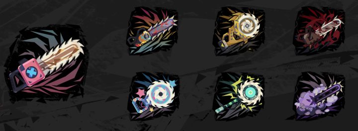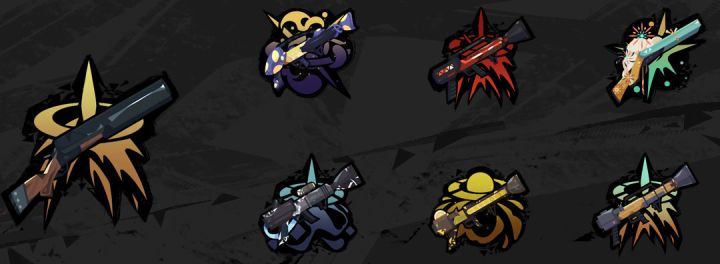 图中武器依次为:双管猎炮(大图)第一排:孢子风暴,充能过载,烟花第二排:破冰锤,黄金打印机,推土机初始:双管猎炮:向角色移动的方向扇形发射出10发子弹,射程短但是带有很强的击退效果。进阶:推土机:和双管猎炮相比缩短了子弹的发射间隔,且有更强的击退效果,同时也会为角色带来一定的后坐力。子弹的尺寸和光亮也更大黄金打印机:极大缩短了发射间隔,拥有比推土机更大的击退和后坐力,子弹变为金币
