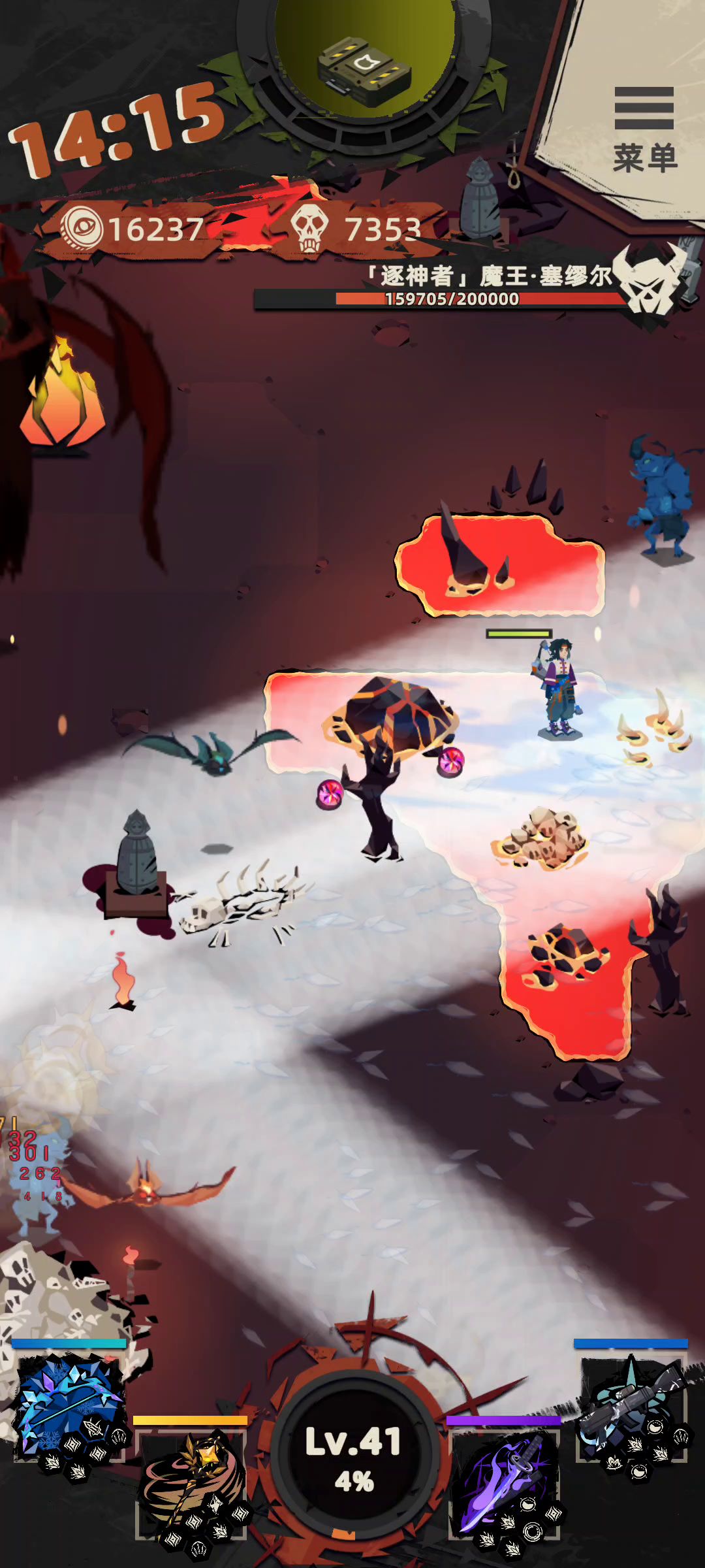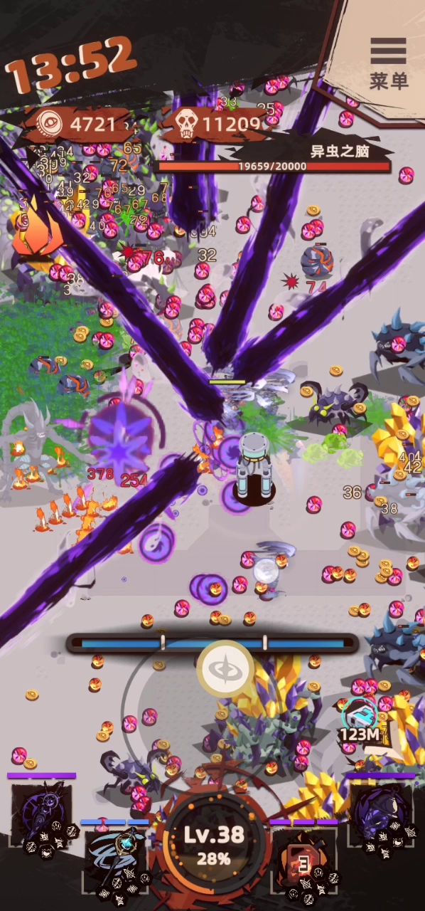 开局优先升级攻击速度,点双发和瞬发加爆炸,重置烟花,可以让怪物直接击退到屏外 用紫镰刀削弱怪物提升攻击力,红枪清理冲刺到面前的敌怪加强续航,绿刀提升近处的清怪能力。#攻略#单机游戏#宝藏厂商