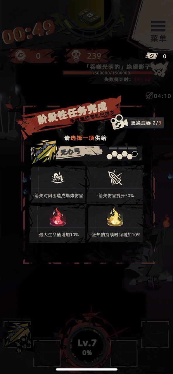 祝福雕像全部点满,去之前随便喝杯加数量或加攻速的酒,不喝也无所谓,开局金弓主要先升散射,刷不到就点爆炸或者反弹都行,前三个最好是散射,爆炸,反弹,之后连射,数量,减cd各点一个,祝福全金加10或减血加15都行,金弓快成型捡其他武器,优先选光枪、宠物、风、火、萤火虫,全先金祝福加10或15的,可以选一个加快速度的金祝福(这样最后boss出来前刚好有一次急速然后在打boss前可以捡完箱子),刷不到就先