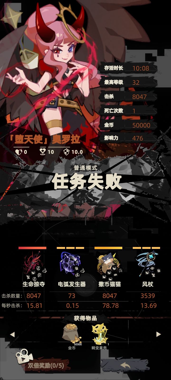 边看电视边玩,挂机挂了一百分钟才六万多金币,还不能双倍领取。花金币的地方太多,赚金币太慢了。前面怕伤害不够一直升主武器后面才拿其他武器就是为了要那个加金币的祝福,可是那个祝福根本没用,无尽模式的契约根本不吃金币加成。