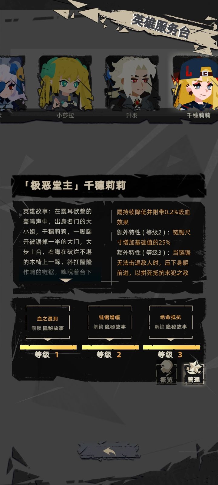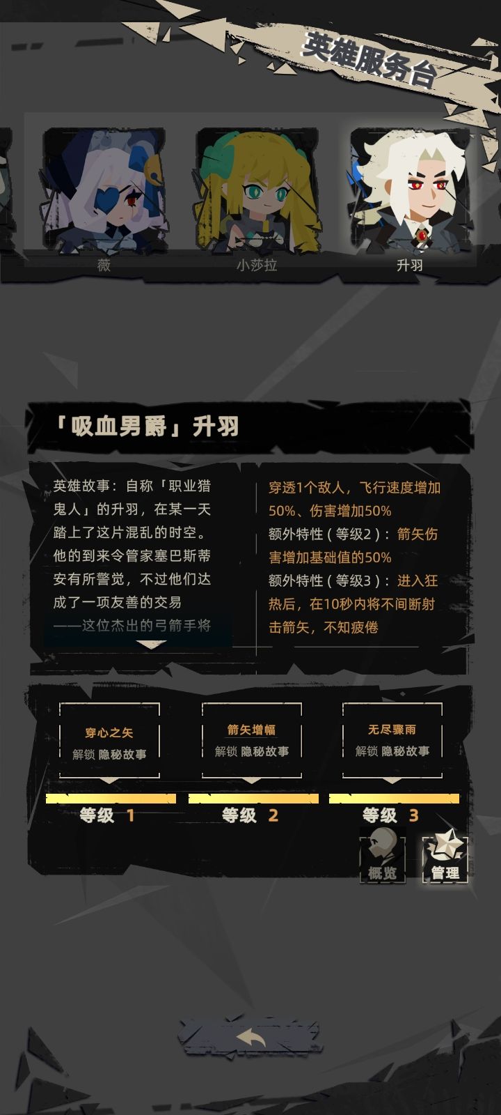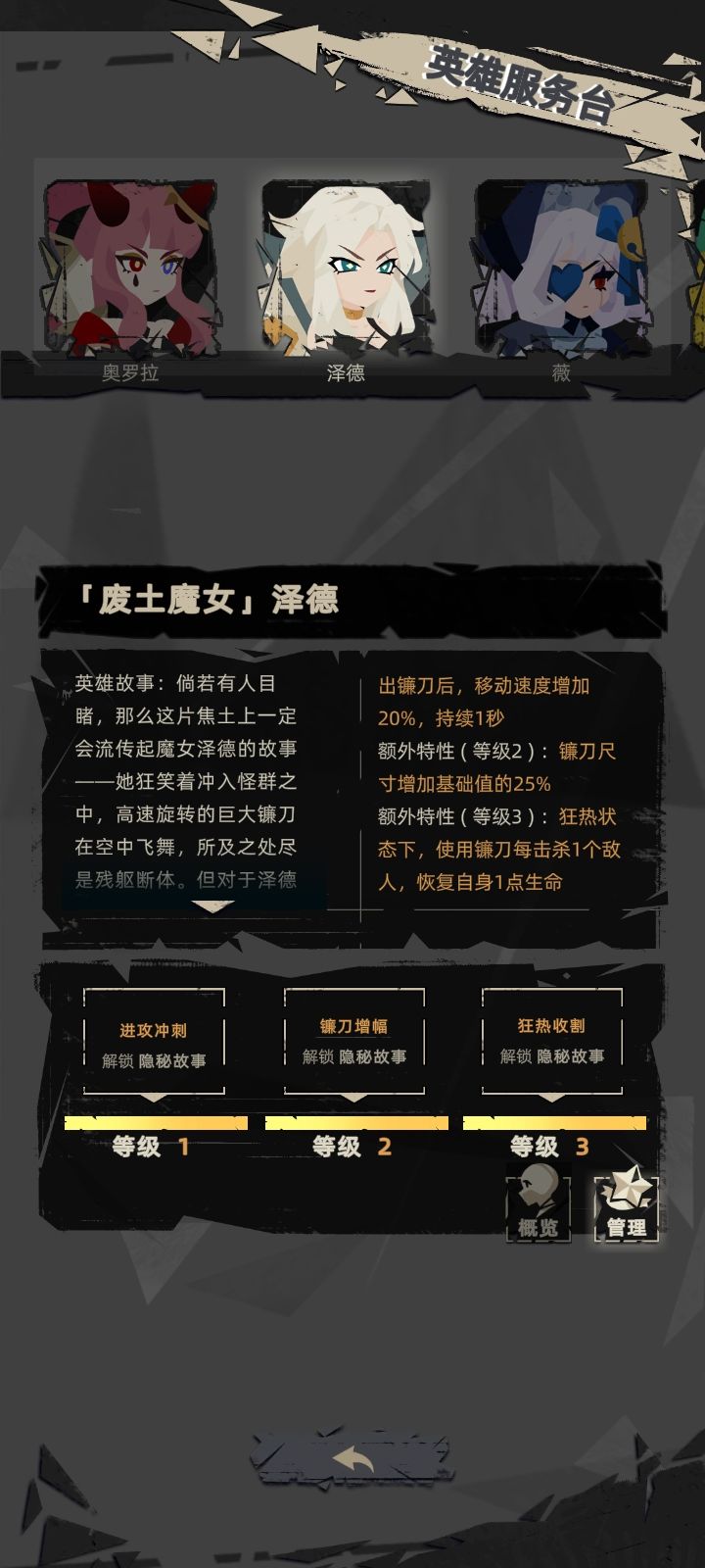 1.在游戏中,你可以同时持有至多4把武器,通过收集「混乱」来提升自身的等级,并获取配件与祝福。每把武器都拥有6个配件槽位和3个祝福槽位。配件将会增强武器的性能,而祝福则直接作用于英灵本身。 2.有5种类型的祝福,分别为红、绿、蓝、紫、金,它们将会赋予英灵不同的能力。 3.当为武器集满了配件和祝福,武器的性能将会达到巅峰。此时,拾取宝箱会将该武器进化成神器。武器上的各色祝福,将会决定该武器的进化
