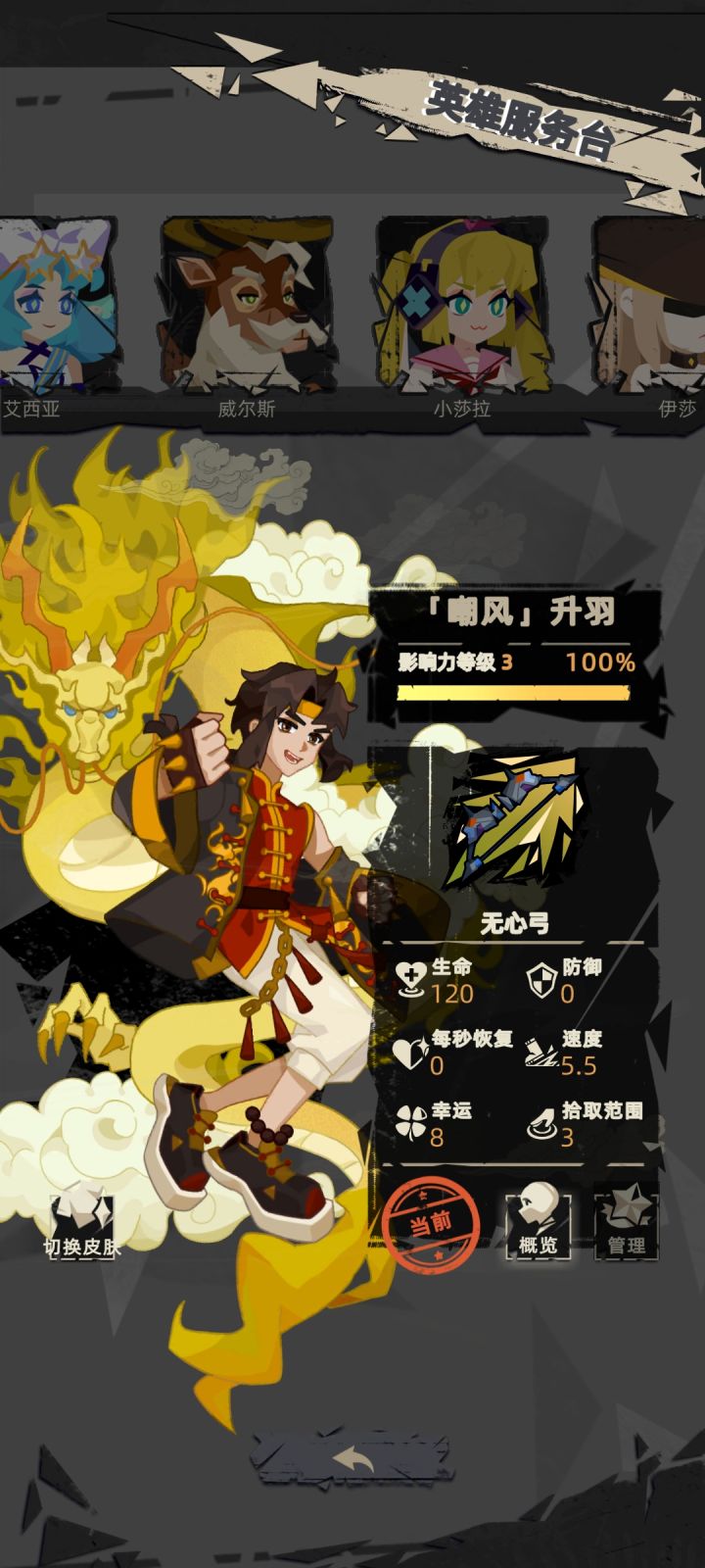 初始:萤火虫:角色会持续生成数只萤火虫追踪附近的敌人,当萤火虫碰到目标敌人时会产生小范围的爆炸+击退进阶:黎明:角色会放出大量的萤火虫,武器的冷却时间变的更短,爆炸范围变的更大最后的光芒:角色会放出大量的萤火虫,被萤火虫击杀敌人的落物会被直接获取野蜂飞舞:角色会放出巨量的萤火虫,当萤火虫碰到目标敌人时会产生范围的爆炸+击退力量衰竭:角色会向最近目标不断发射萤火虫,萤火虫碰到敌人后