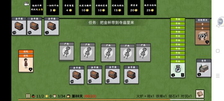 怎么说呢?好像并不难,关键在生产食物,让活人去生产,死尸才是打架的王者,剑士也垃圾.....所以去生产死尸护卫你的家园,拿到资源慢慢的就会越来越好,但是牌太多,也很烦,所以如果有活人,那就留着食物,如果没有,那就出售食物,,我活了51天.....