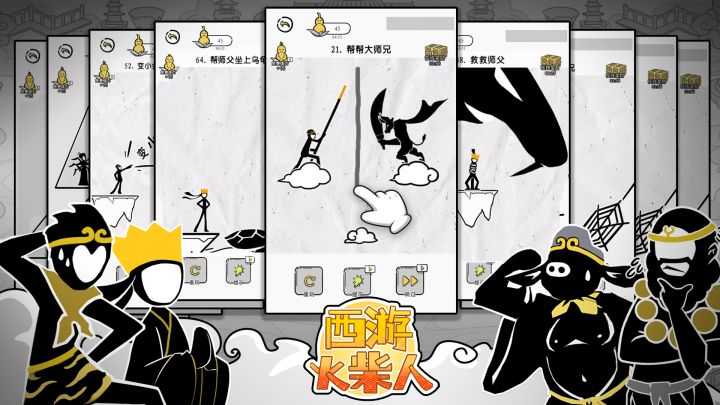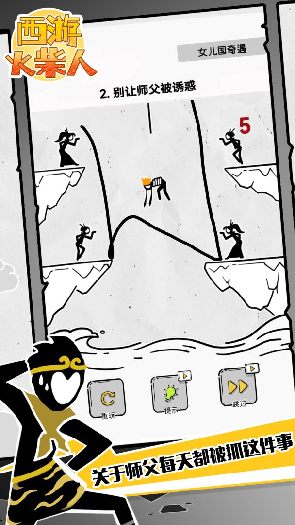 开动脑筋,快想一想,如何用手指画线,帮助唐僧师徒四人度过难关!
