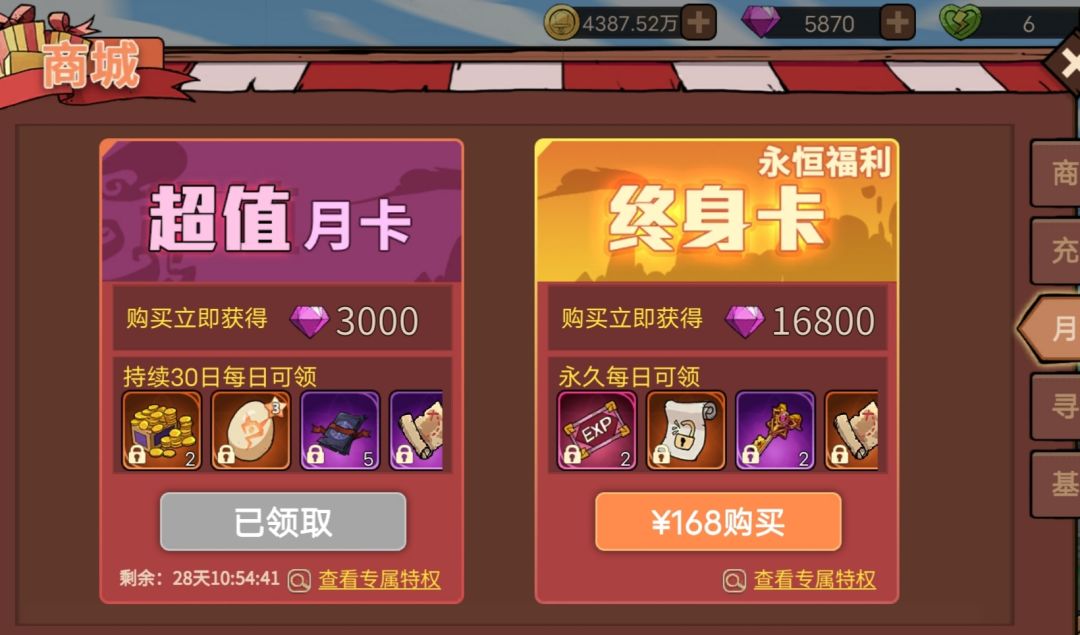 提升消费等级(就是在商城消费钻石)可以获得消费贵族vip,很需要那个经验提升,20%(贵7)也就封顶了,不用继续提升。 大概150w钻石就能升满,我花多了[表情_捂脸哭] 可以提升20%修炼场挂机经验,后期升级基本上全靠挂机。 正常操作是买扫荡券然后低价卖,但是太耗时间。这里我想赌一波礼包,结果还行,没亏。 这里只是帮大家测试一下,不要求各位都追消费vip,毕竟测试,说不定明天就直接发经验药水了。